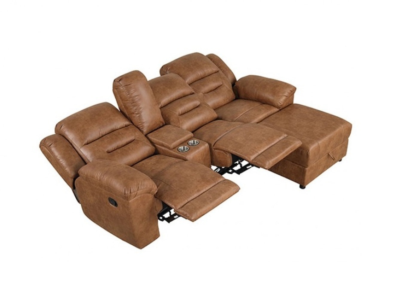 Contemporary Saddle Brown Leatherette 2pc Sectional Sofa Set Console Cup Holder Chaise Storage Recliners Adjustable Back Rest Living Room is available
