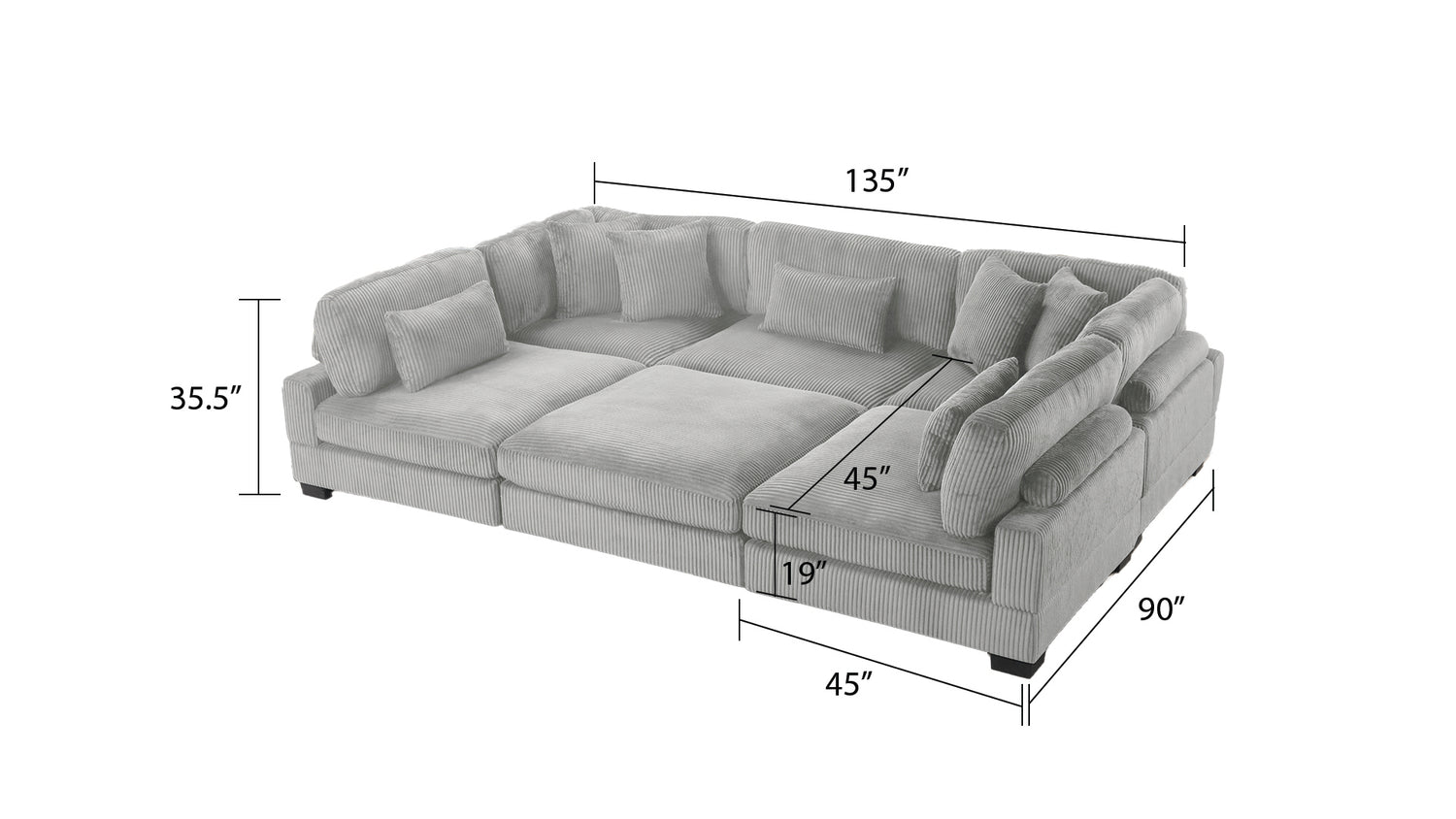 Bentley Modern Style Modular Sectional unique layout made with Corduroy fabric and wood in Gray Setup-1 (NJ Warehouse Inventory)
