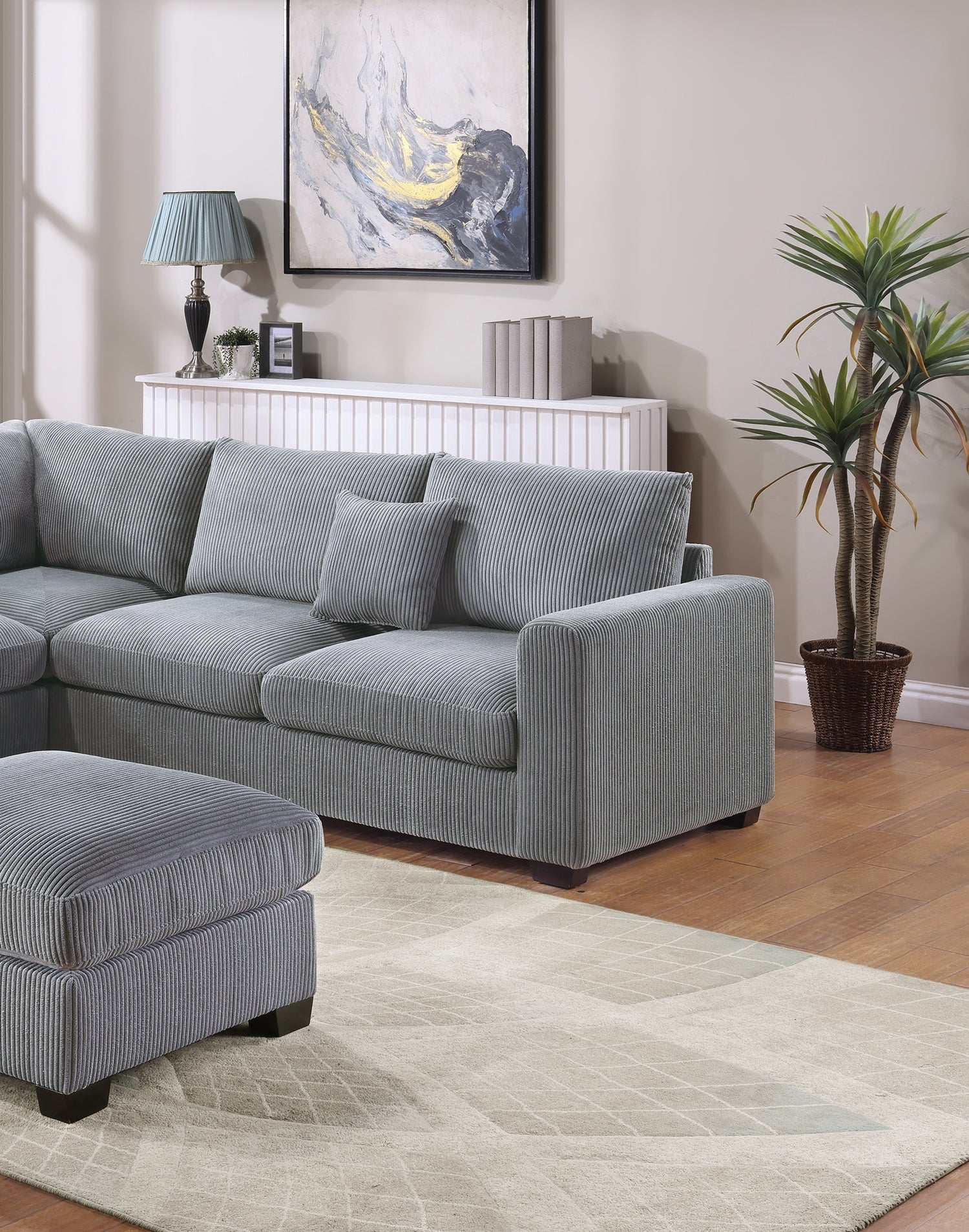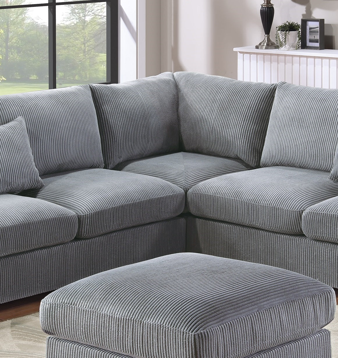 L-Sectional Sofa Corduroy Fog Color LAF And RAF Loveseats Corner Wedge Ottoman 4pcs Sectional Set Couch Living Room Furniture is available