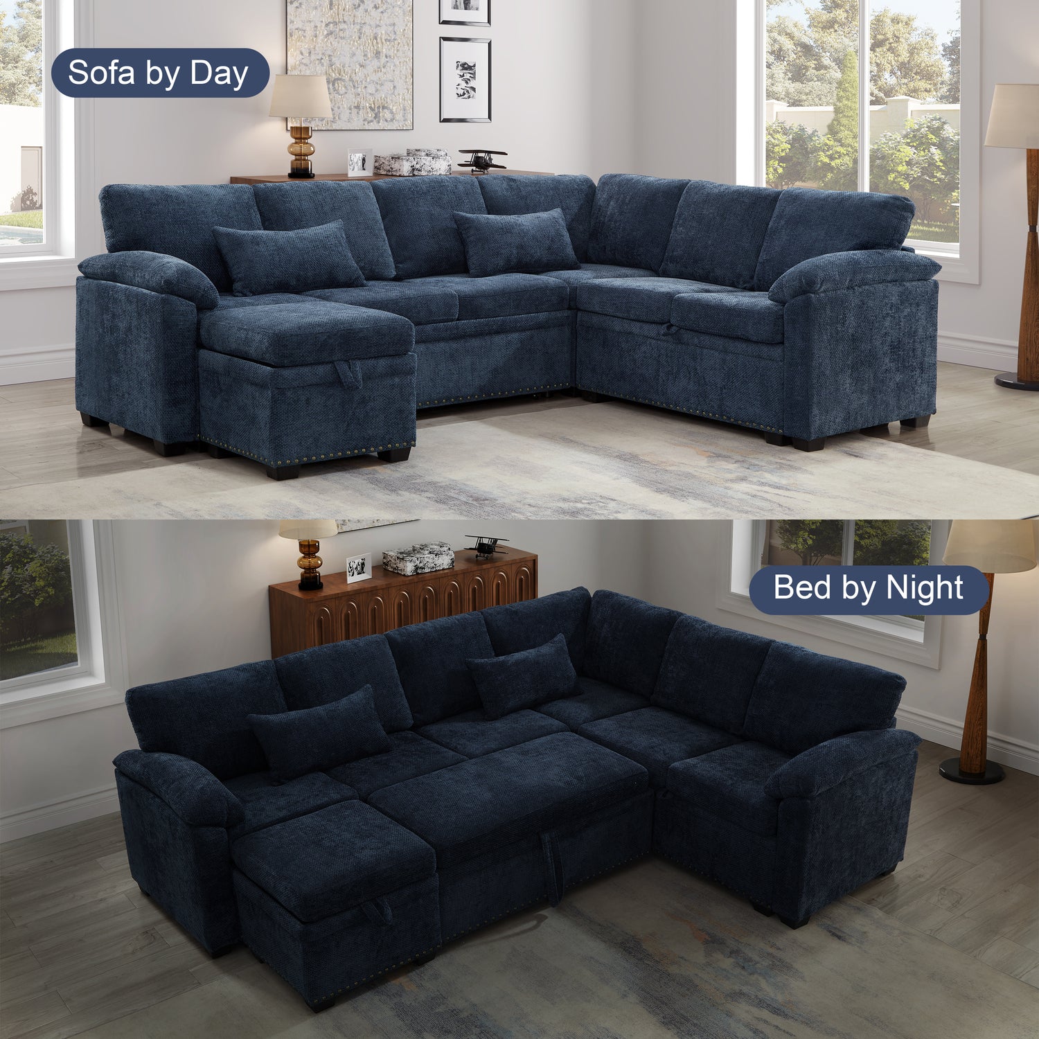• Comfortable & Sturdy: Our chenille sectional sofa is made with a sturdy solid wood frame and cushions filled with high-density sponge and wrapped in chenille fabric. The sofa looks modern and is easy to clean.