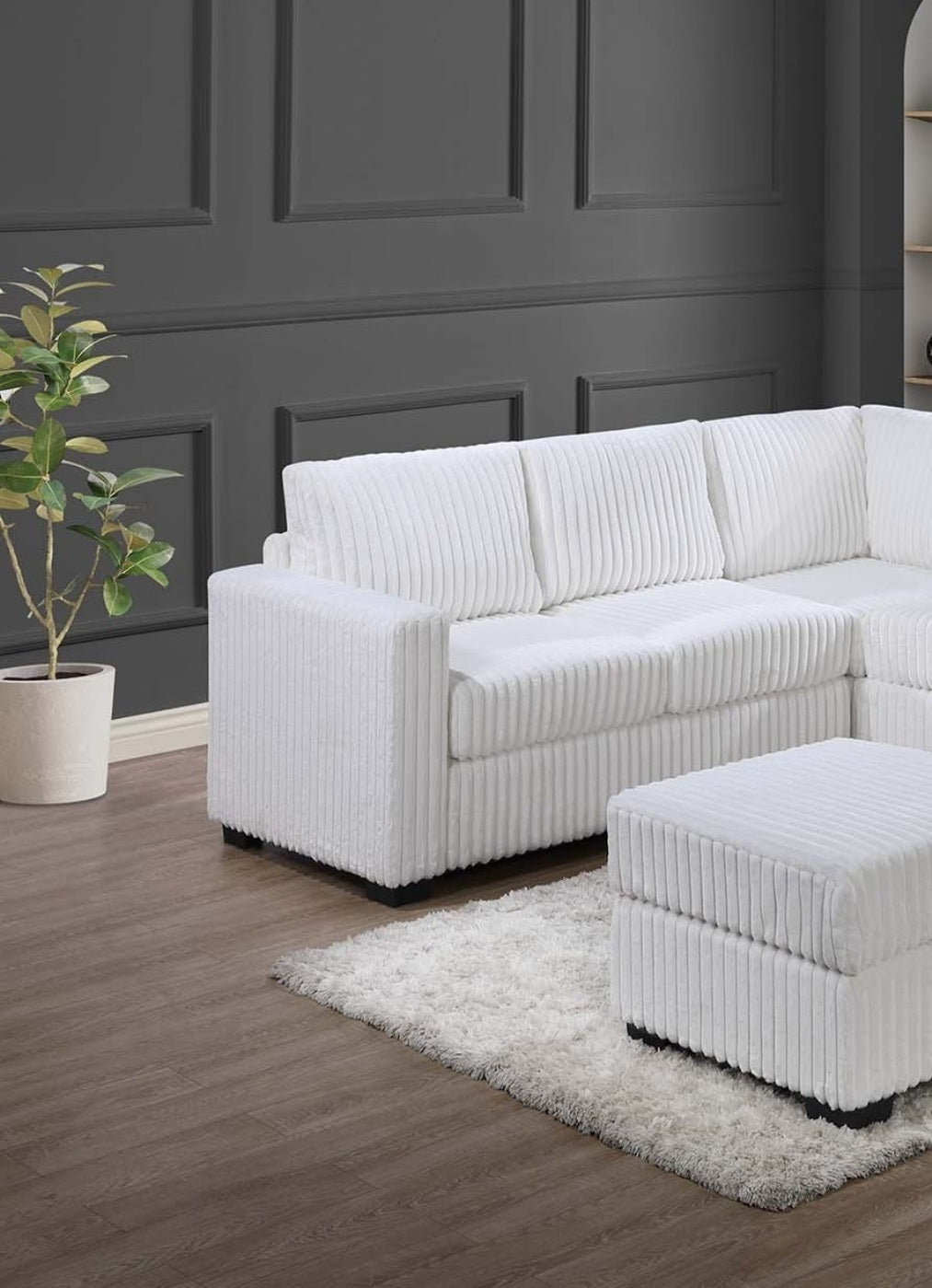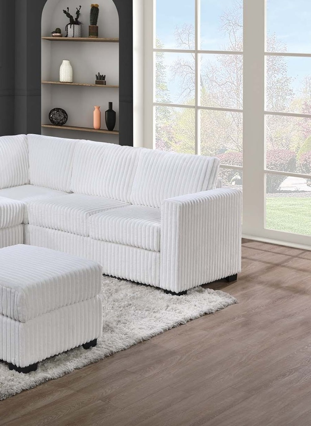 Beautiful 4-Piece Sectional Set W/ Ottoman Milk Color One Arm Loveseat Corner Wedge Corduroy Upholstered Plush Couch is available