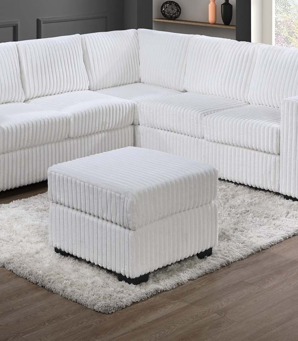 Beautiful 4-Piece Sectional Set W/ Ottoman Milk Color One Arm Loveseat Corner Wedge Corduroy Upholstered Plush Couch