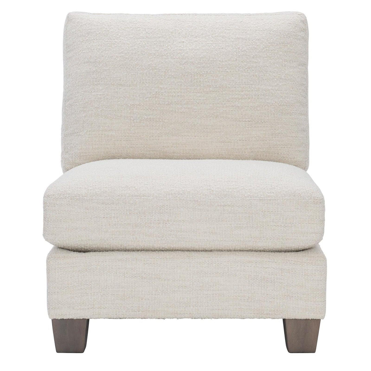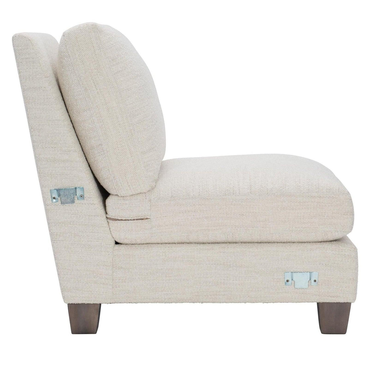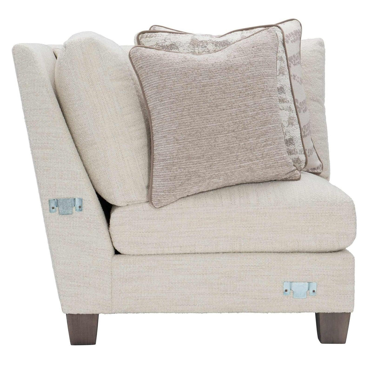 - Transitional elegance meets luxurious comfort in this armless, corner chair with sumptuous cushioning.