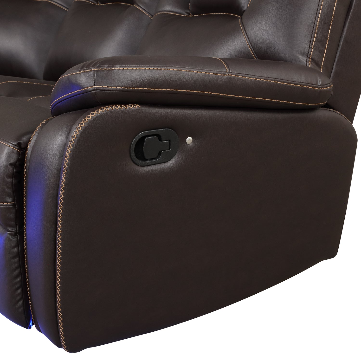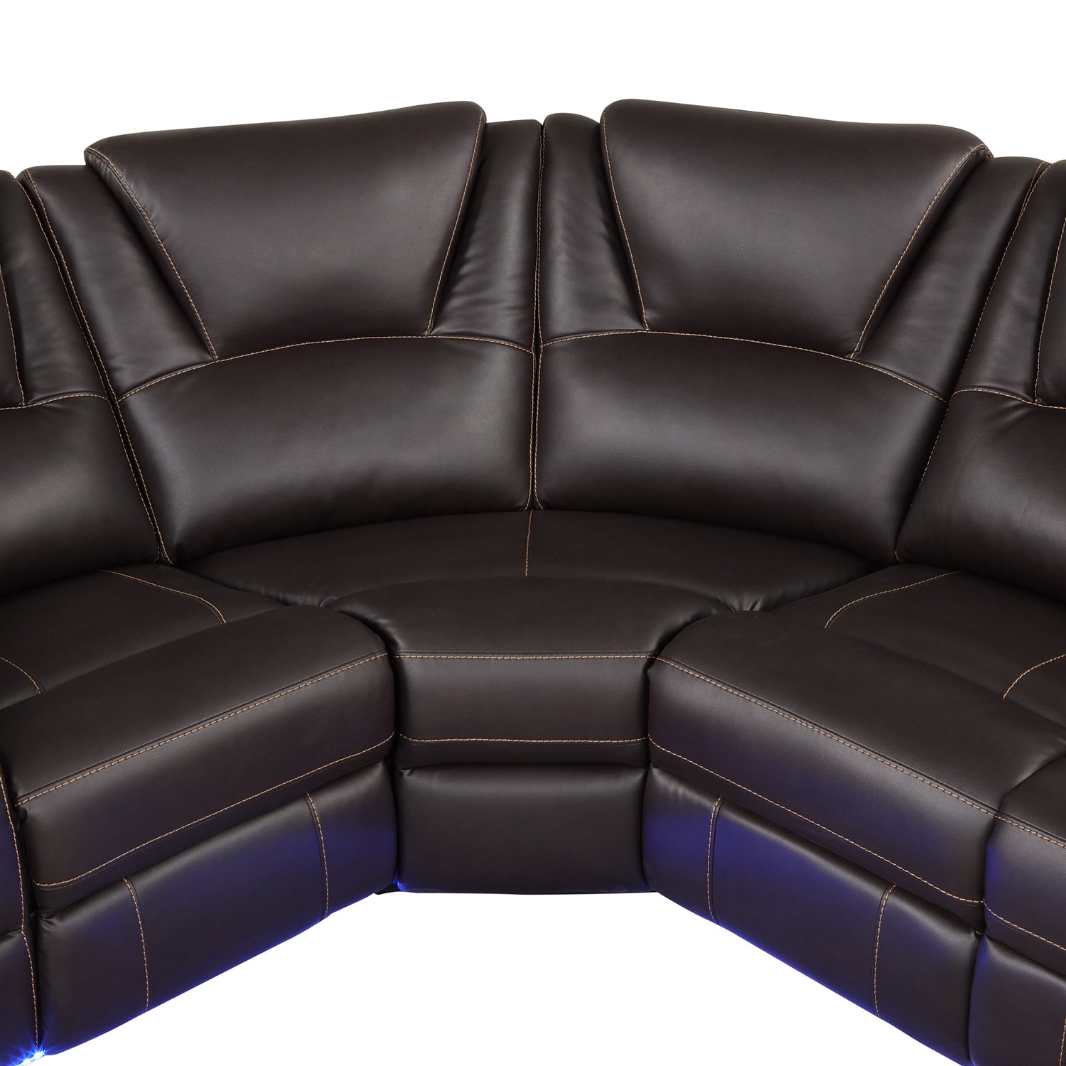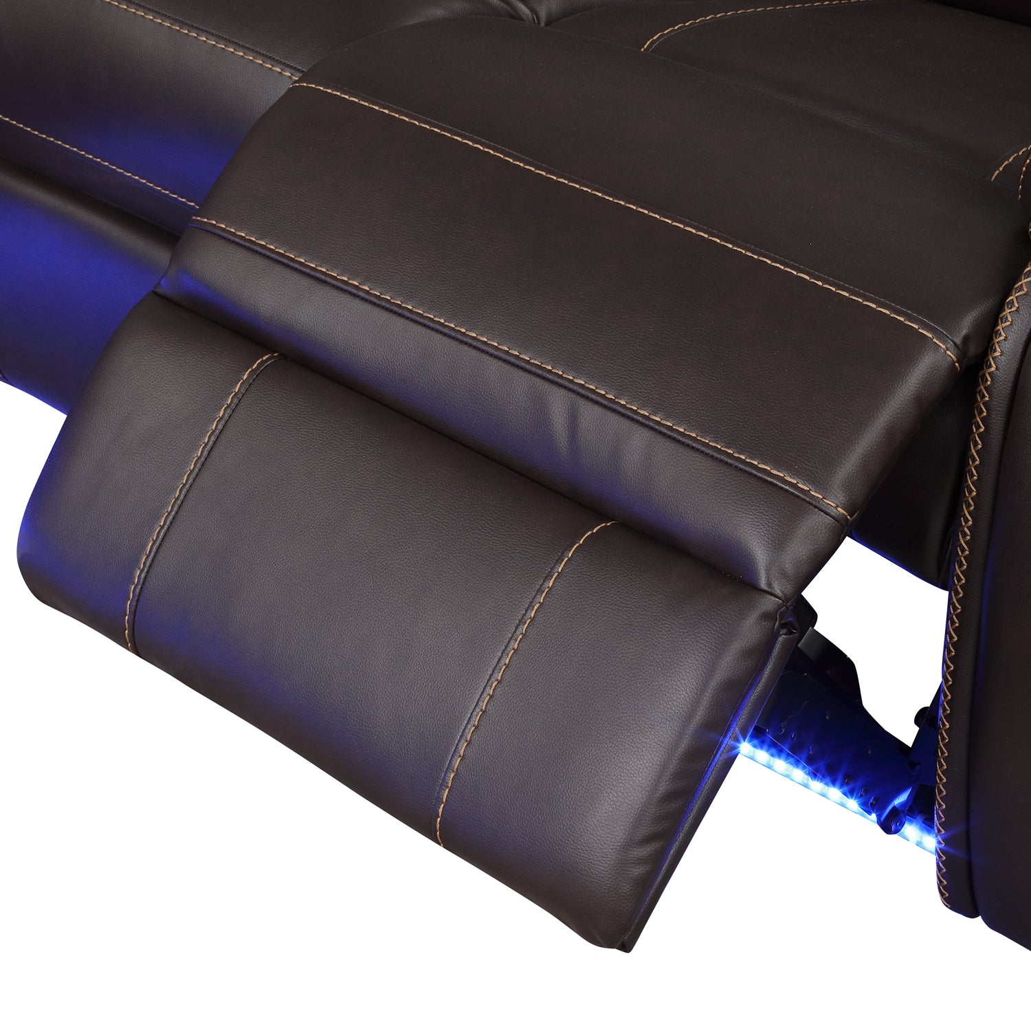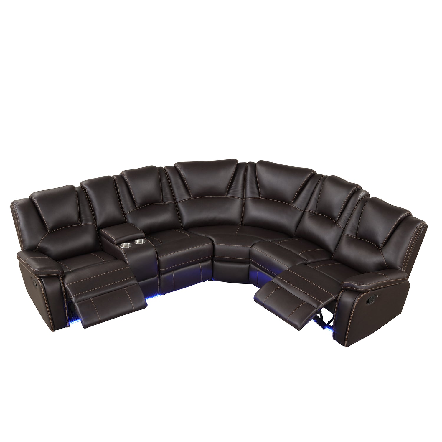 Modern Faux Leather Manual Reclining Sectional Sofa with Center Console and LED Light Strip, Brown, PU Symmetrical Couch with 2 Cup Holders and Storage is available