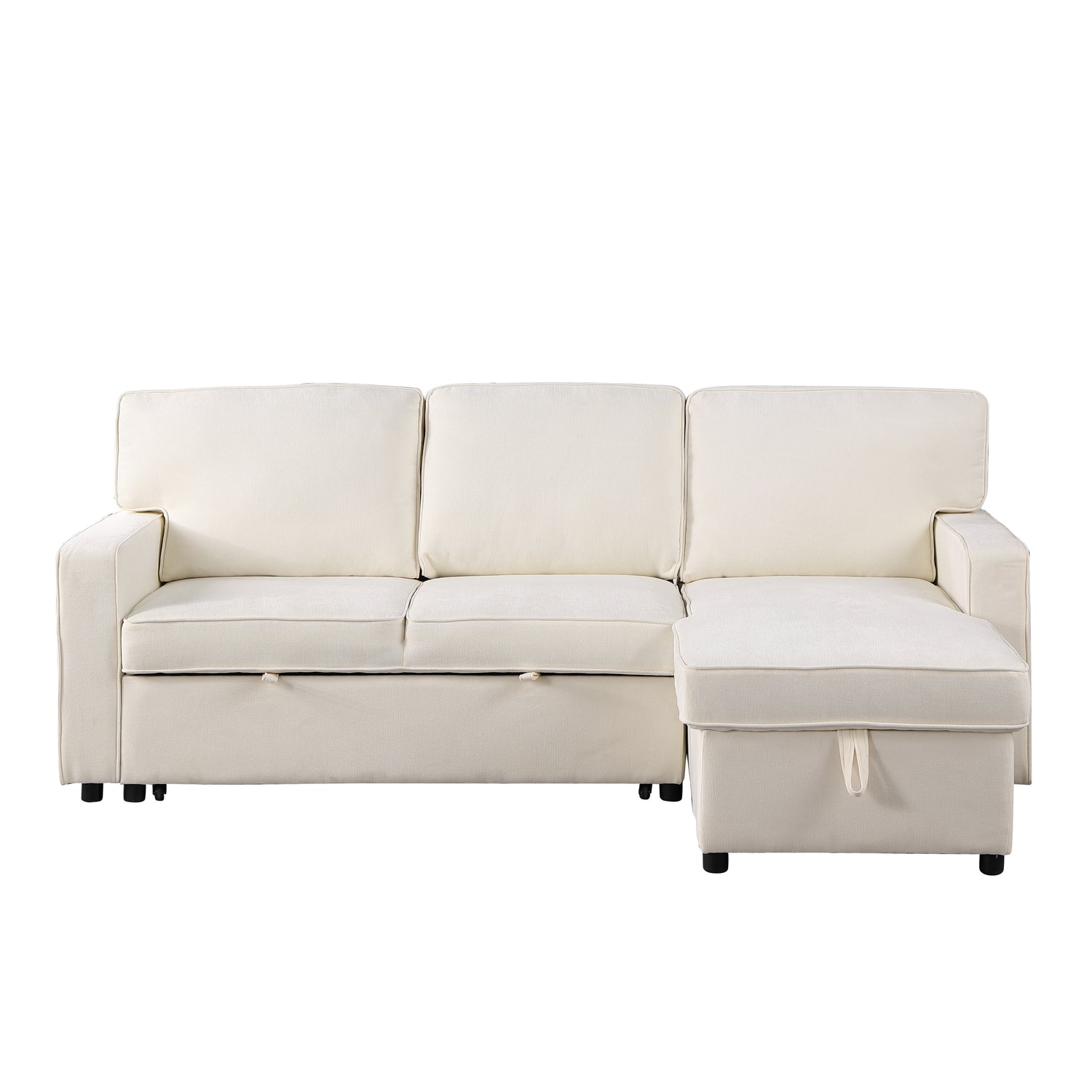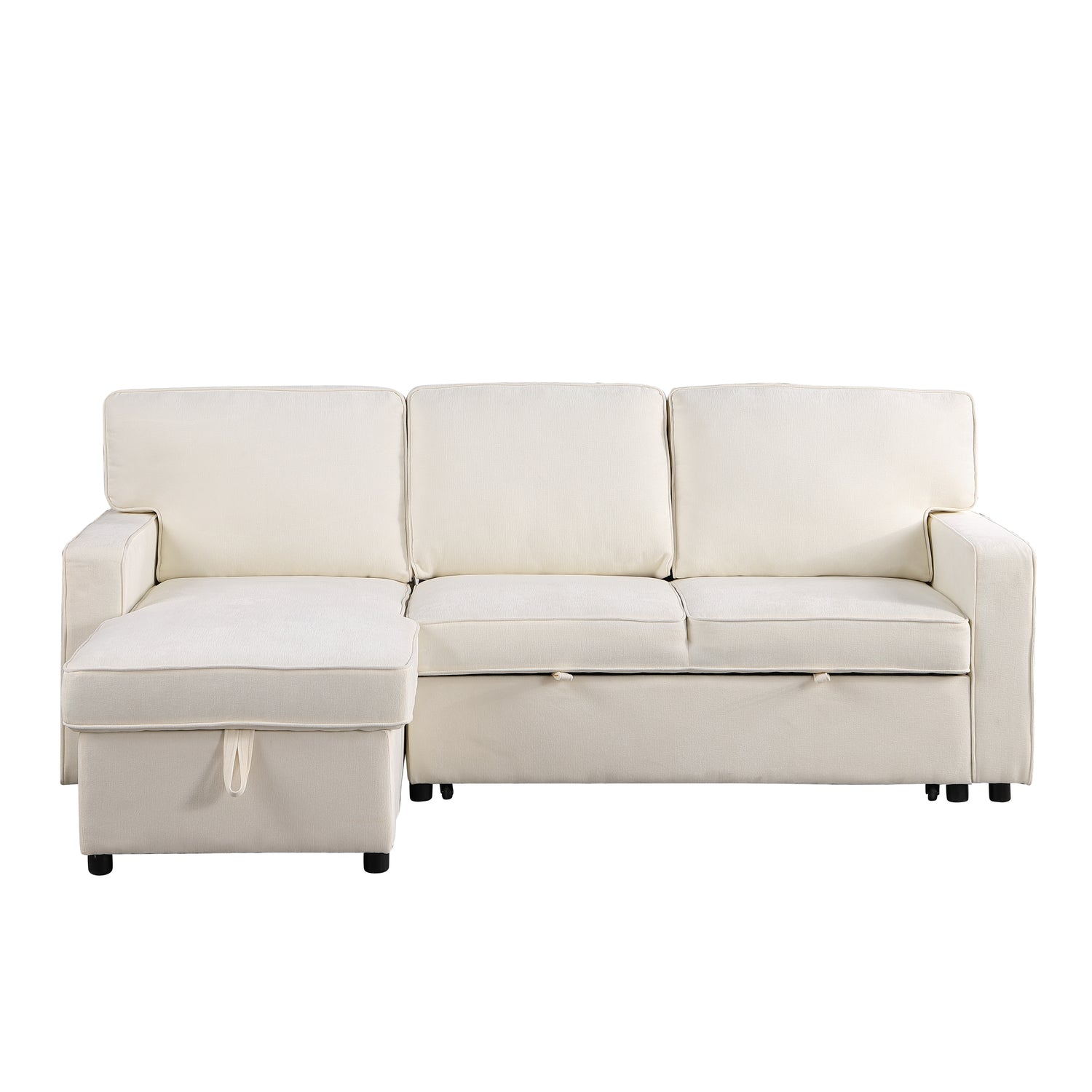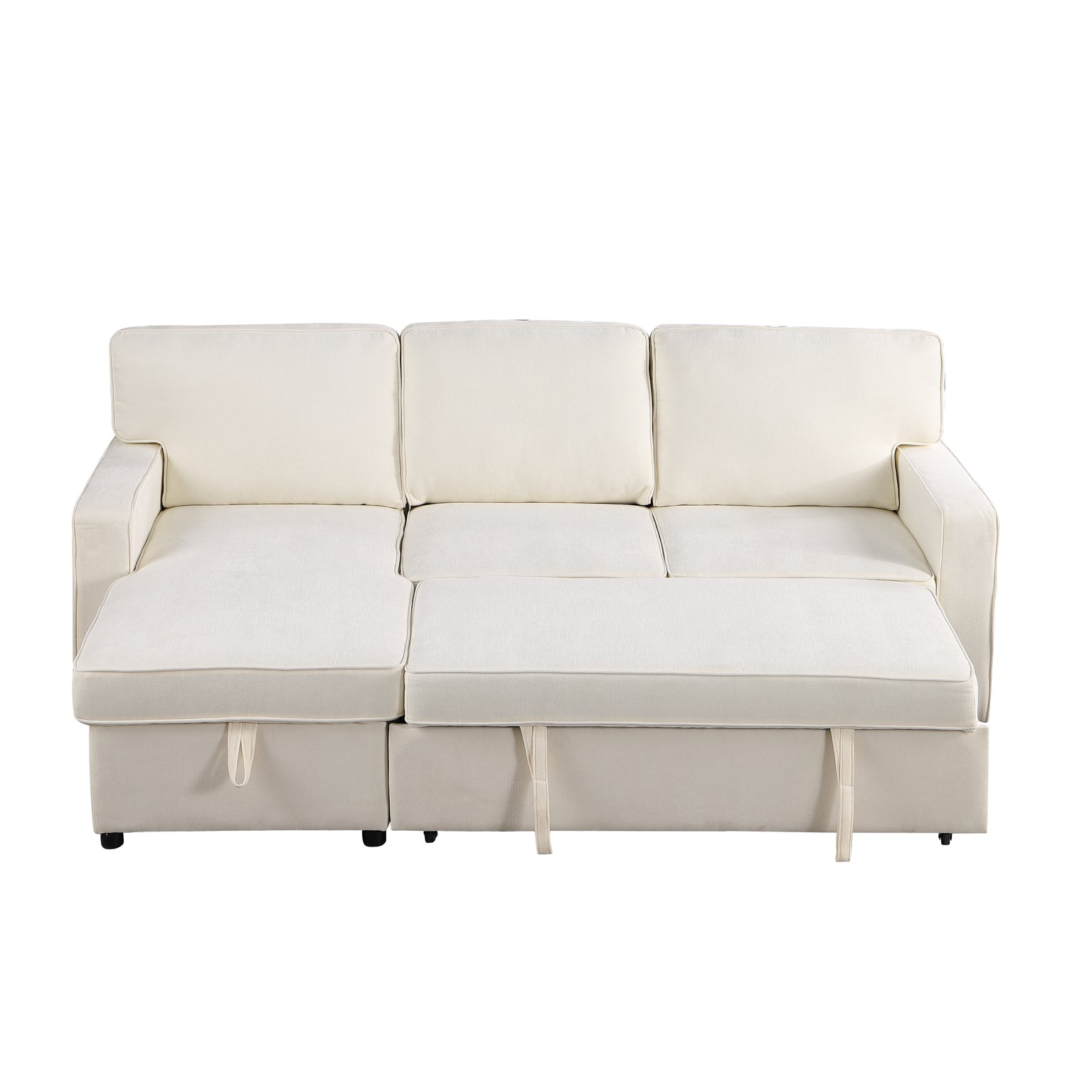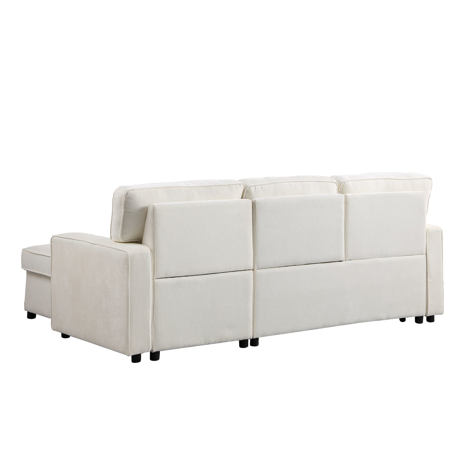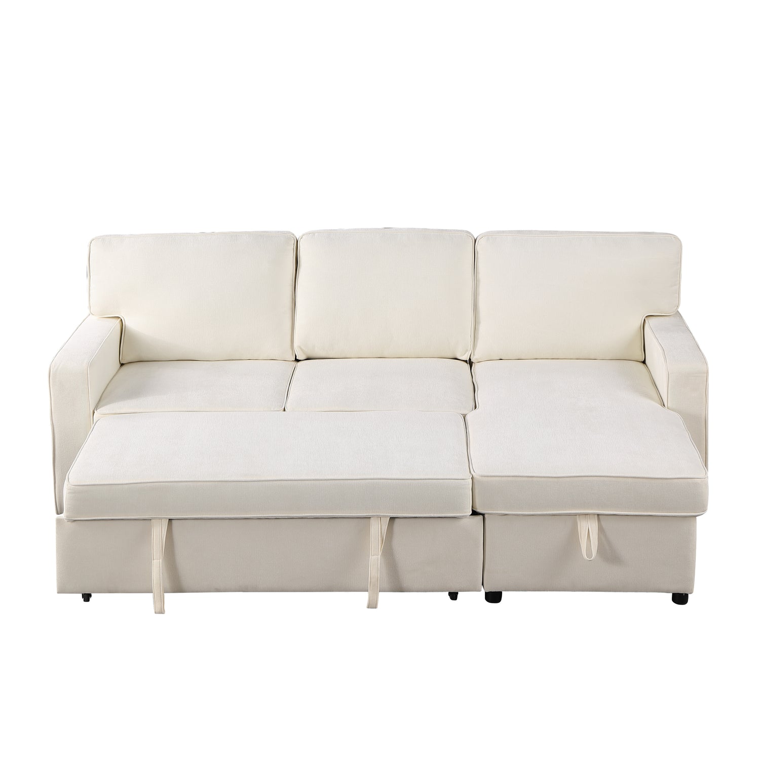 U_STYLE Upholstery Sleeper Sectional Sofa with Storage Space, USB port, 2 cup holders on Back Cushions