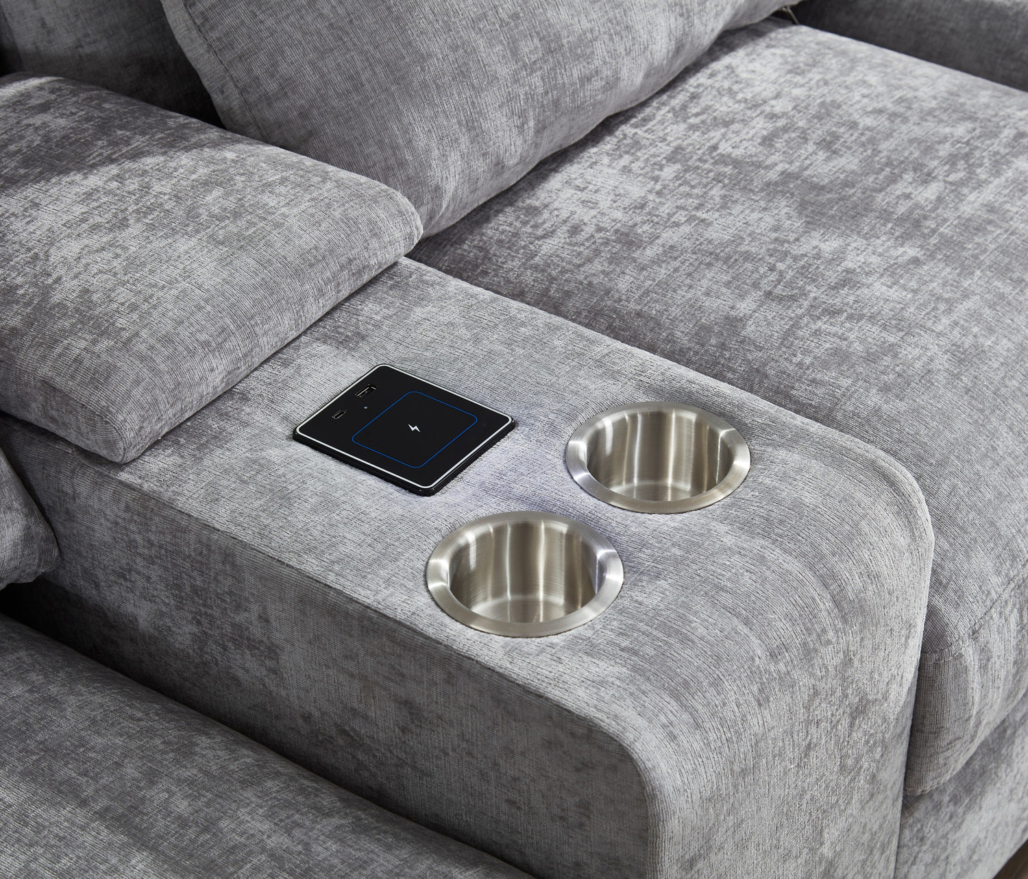 Modern Sectional Sofa Couch with Console,USB Charging Port,Reading Light,Cup Holder, Light Grey