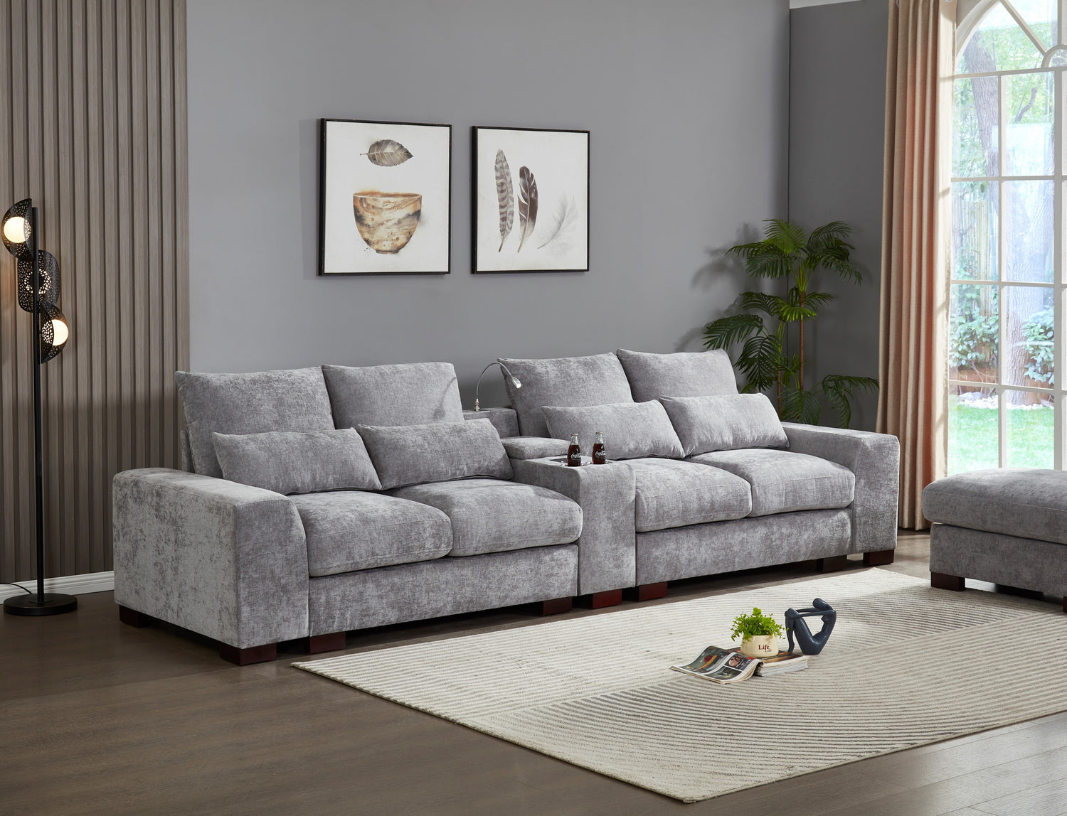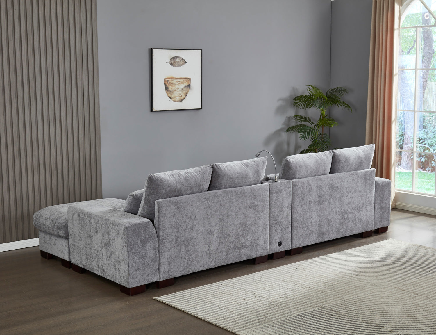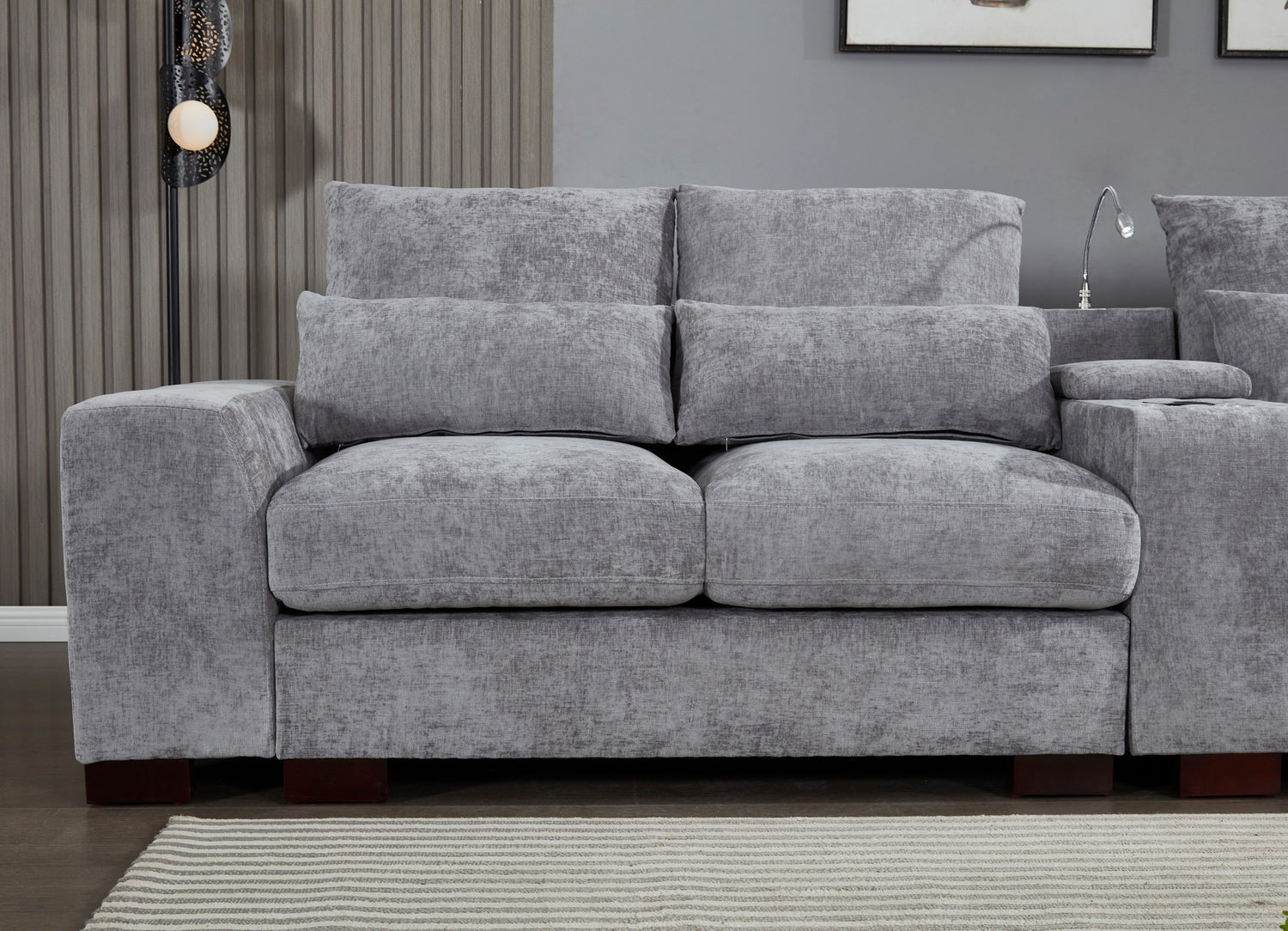 Modern Sectional Sofa Couch with Console,USB Charging Port,Reading Light,Cup Holder, Light Grey is available