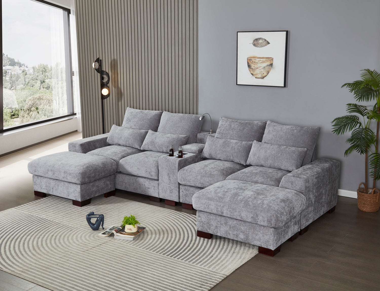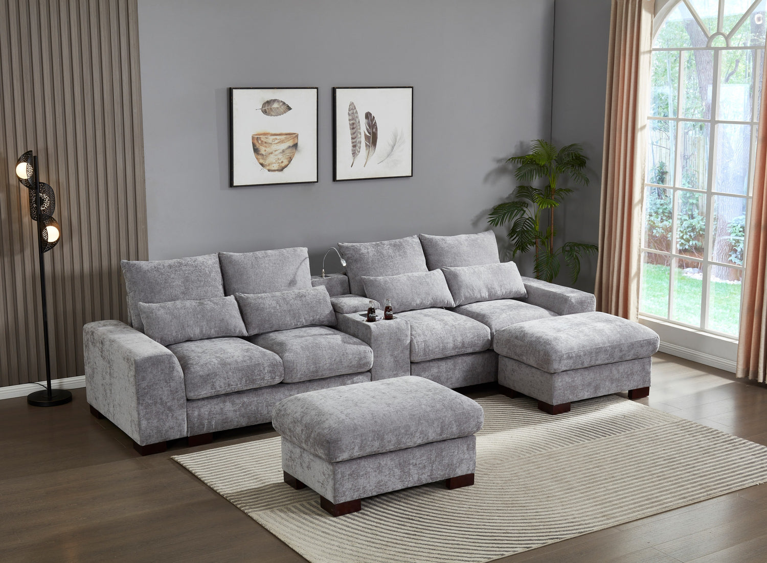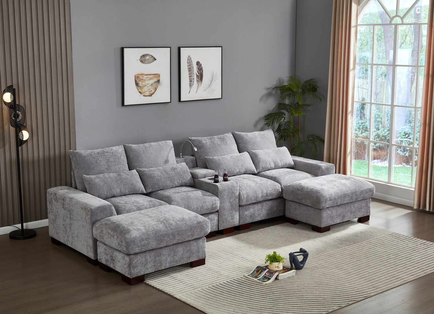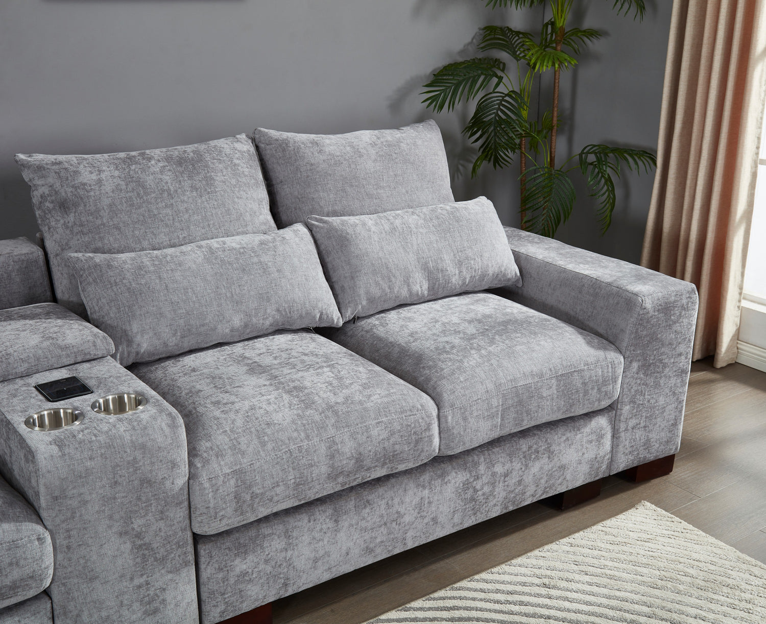 Modern Sectional Sofa Couch with Console,USB Charging Port,Reading Light,Cup Holder, Light Grey is available