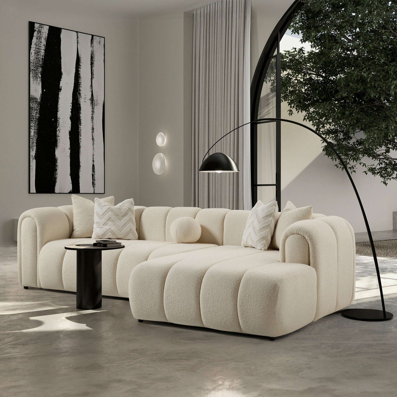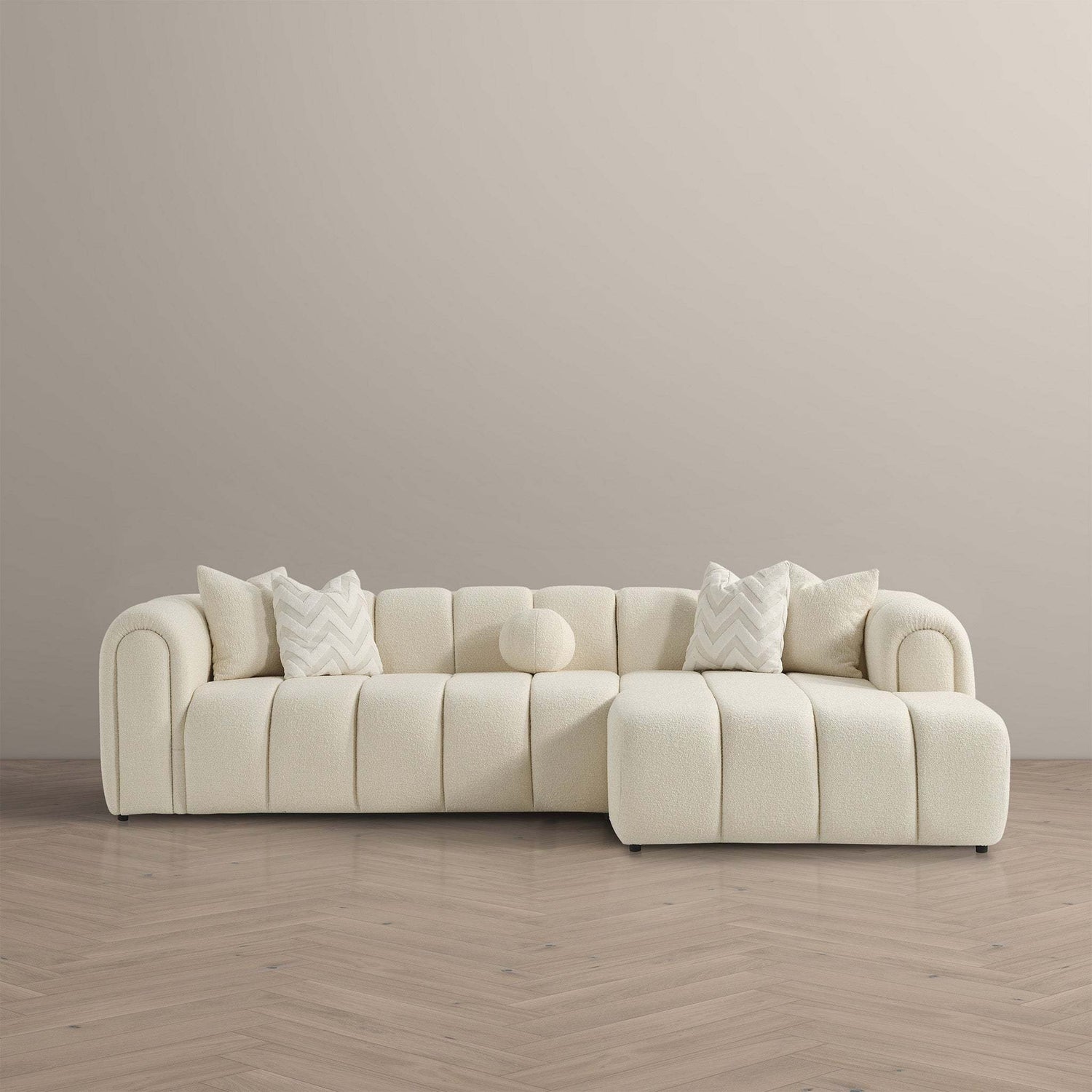 Beatrice Modern Tufted Ivory Boucle Right Sectional Sofa