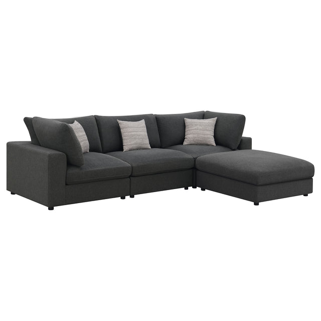 Rhette Charcoal 4-piece Upholstered Sectional with Ottoman