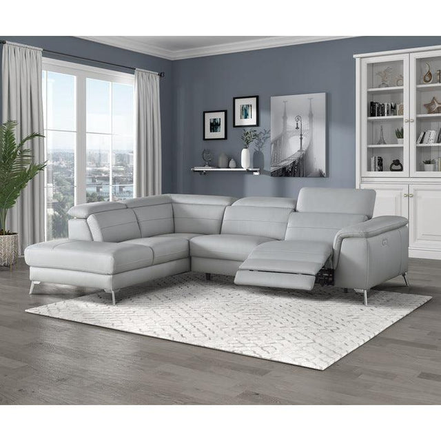 Homelegance - Cinque Light Gray Leather Power Reclining Sectional w-Left Chaise - 8256GY*2LRPW