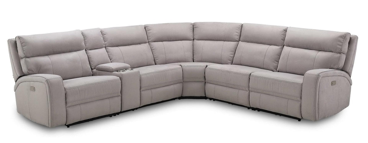 Elegant in its minimalism, the Cozy Sectional offers unparalleled comfort. This sectional offers modular components creating endless configuration possibilities which is ideal for families or groups. This sectional features 2 corner end recliner, a console with cupholders, 1 stationary armless chair, 1 power recliner armless chair & overstuffed cushions for ultra comfort and a solid oak frame to ensure long lasting use. This set can be special ordered in a wide array of colors.