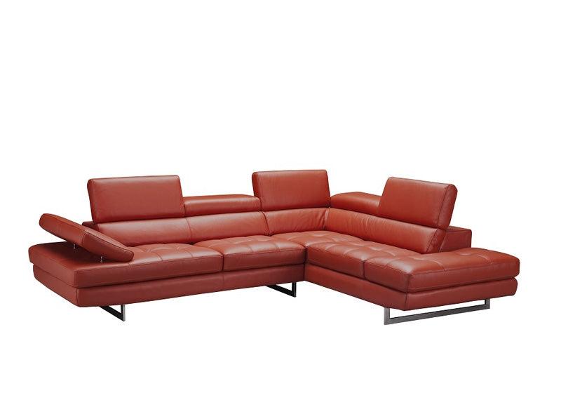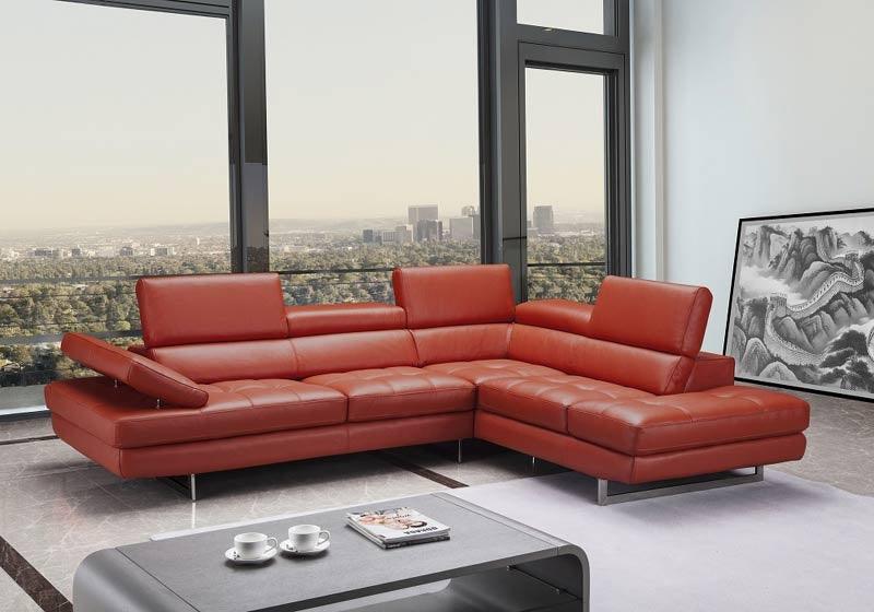 The Venus Sectional by J&M is classfully designed with padded adjustable armrest that feature a ratchet system for adjustability. The Venus sectional also feat--ures 6 adjustable head cushions, and boxed back, seat cushions. This beautiful sectional is Constructed with thick Italian Dark Orange Leather, designed for flexibility and durability.