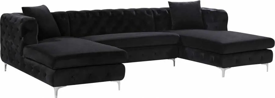 Gail Velvet 3 Piece Sectional In Black - 664Black-Sectional | Meridian