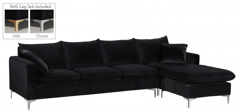 Naomi Velvet Reversible Sectional In Black - 636Black-Sectional | Meridian