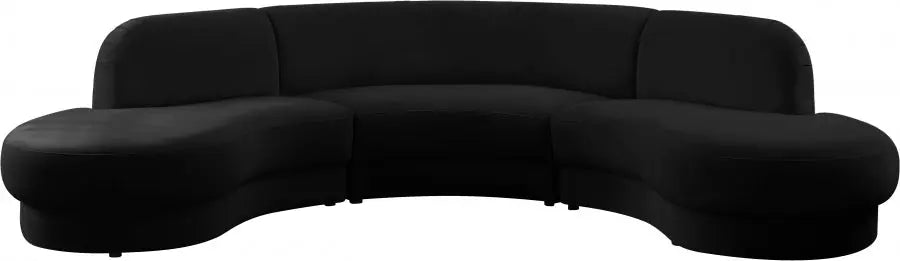 Rosa Velvet 3 Piece Sectional In Black - 628Black-Sectional | Meridian