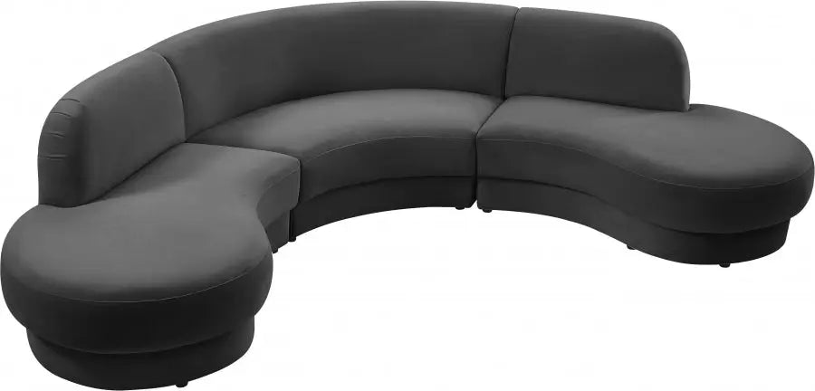 Rosa Velvet 3 Piece Sectional In Grey - 628Grey-Sectional | Meridian
