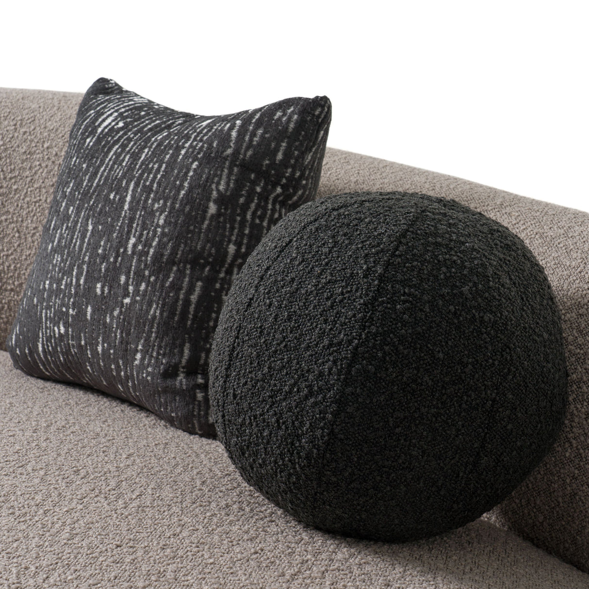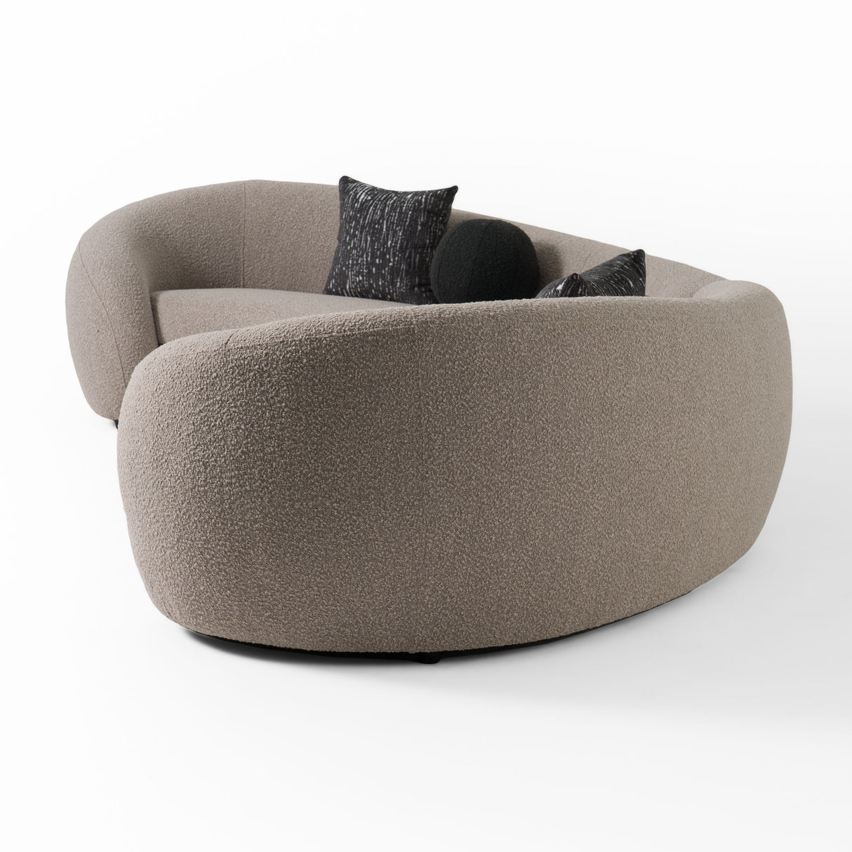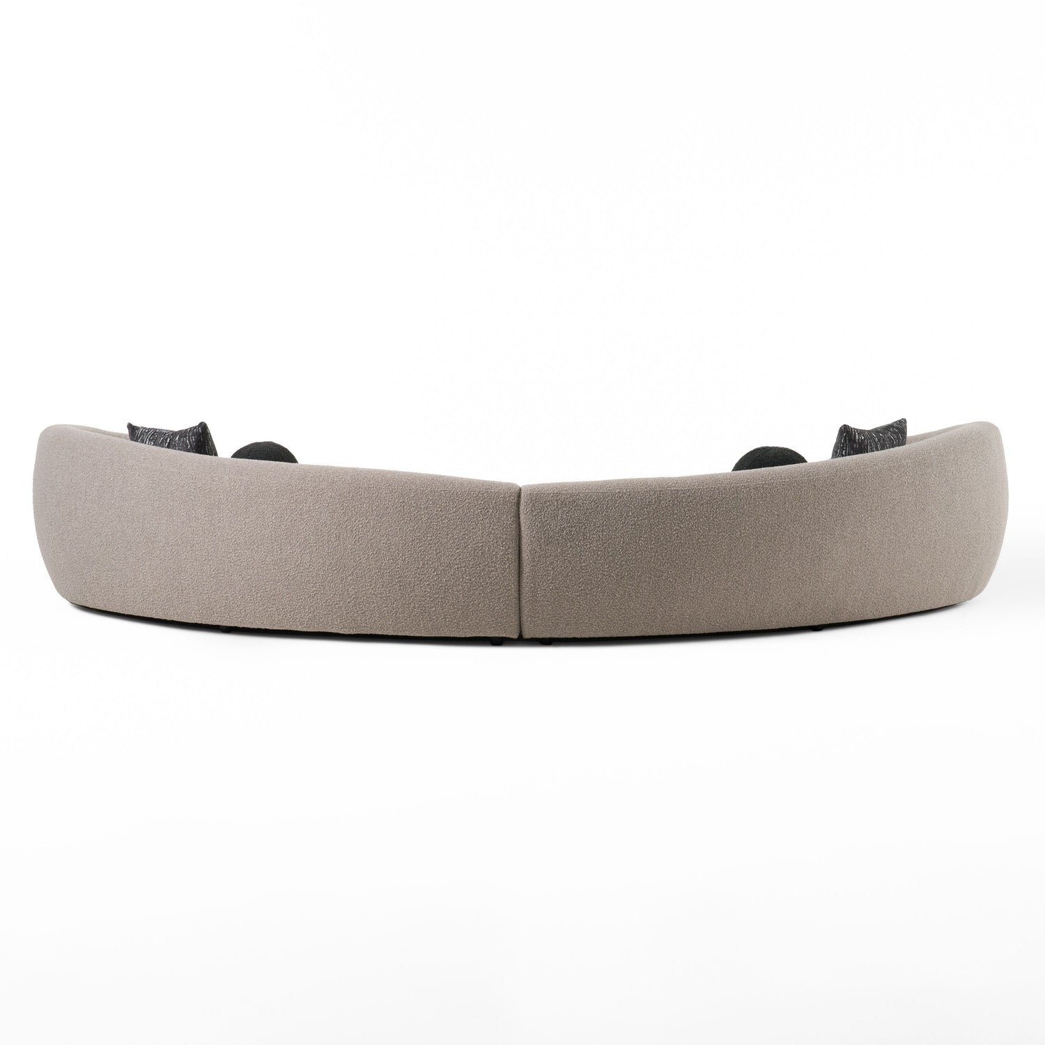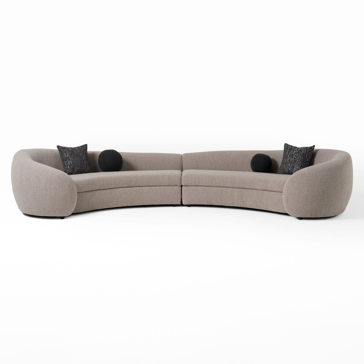Relish in the all-encompassing comfort of the Modrest Kilmer Curved Sectional. The Kilmer's wide curved arches and elegant silhouette articulate a soothing atmosphere that allows for tranquil entertainment and interaction. Wrapped in a cozy gray fabric and accented by two sets of black contrasting pillows.