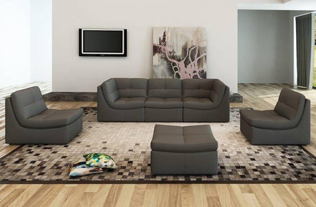 625 Grey Italian Leather Laf Sectional With Ottoman - 1754431131-Lhfc-Ott-G | J&M