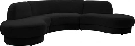 Vivacious Velvet 3 Piece Sectional In Black - 632Black-Sectional | Meridian