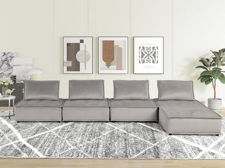 Aveline 120'W Light Gray Velvet 5 Pc Sectional Sofa