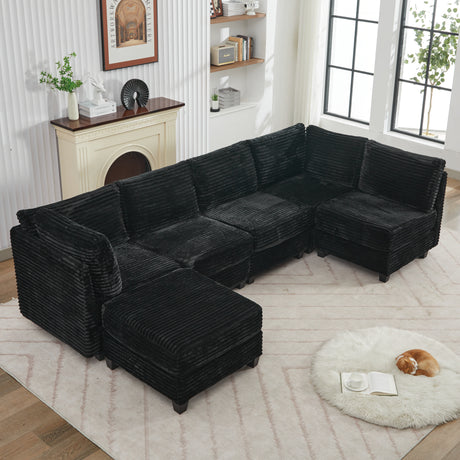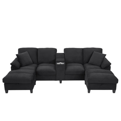 Modern U-shaped Sectional Sofa with Storage Ottomans, Corduroy Upholstered, Black, 116.9' L