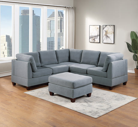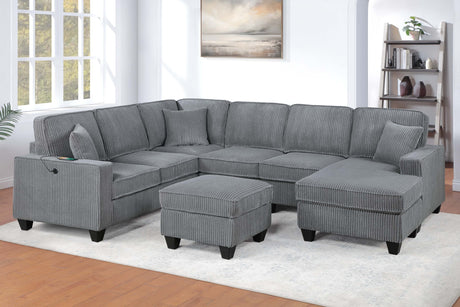 Isla 119' Gray Woven Fabric 7-Seater Sectional Sofa with Ottoman