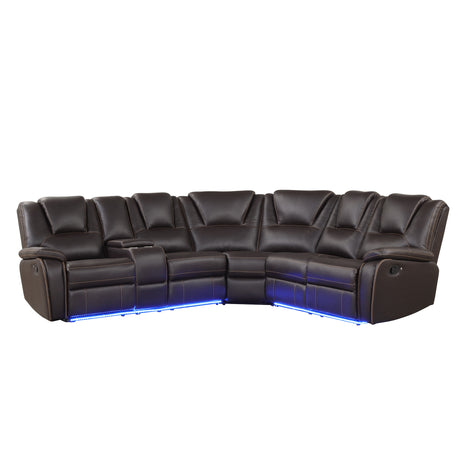Dollum Two Tone Chocolate Nubuck Manual Recliner Sectional Sofa w/USB Port & Cupholder Console