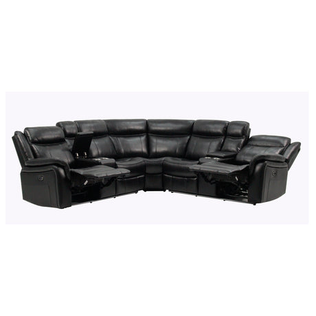 JUPITER Black Leather Sectional with Recliners and LED Lighting