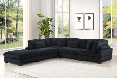 Modern Oversized U-shaped Sectional Sofa with Chaise Lounge Upholstered in Soft Black Corduroy