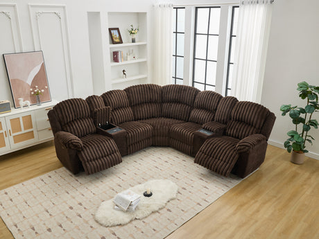 M083 Power Reclining Sectional Sofa Couches with wireless charger,hidden cupholders brown