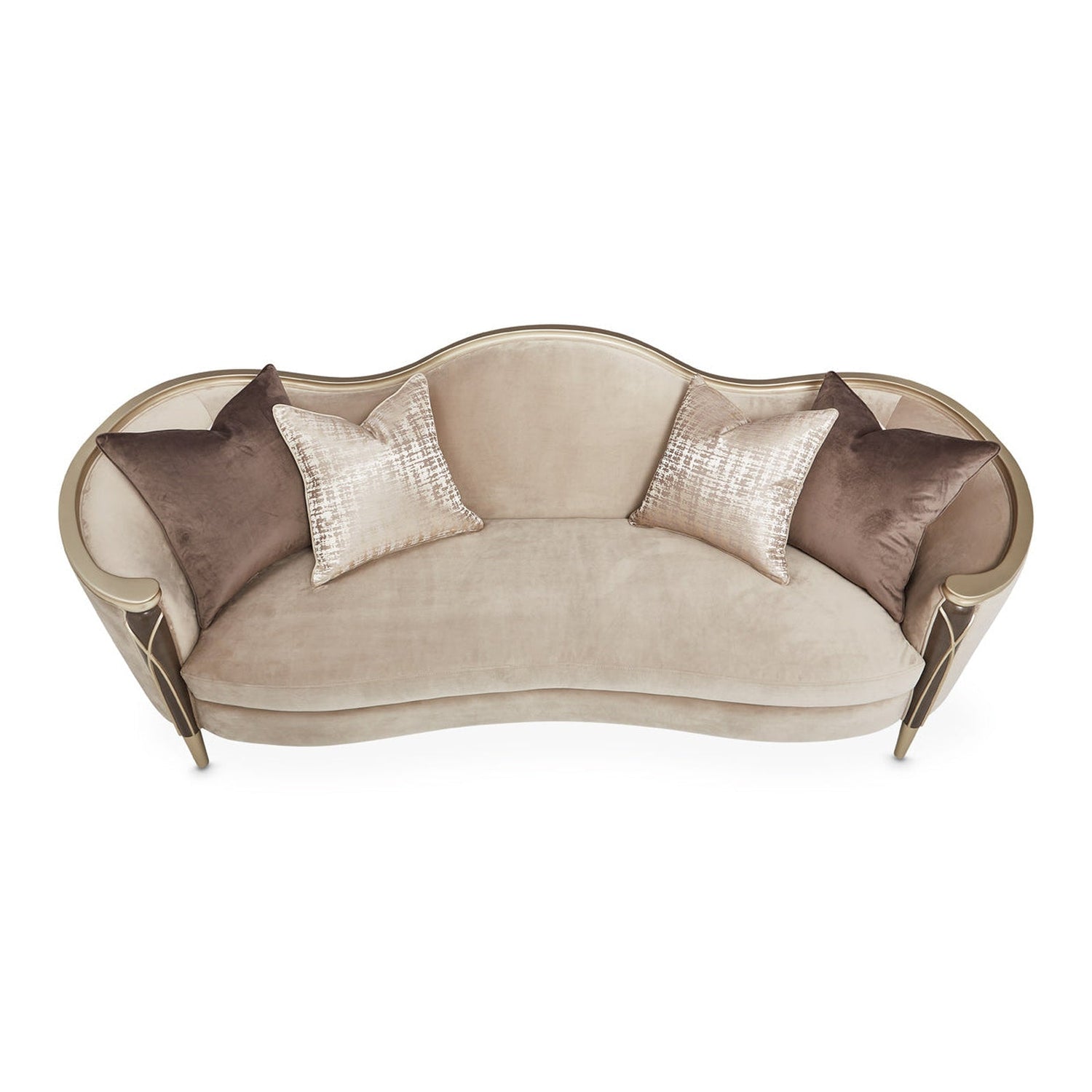 Michael Amini Villa Cherie Sofa in Porcini Velvet & Hazelnut Finish – AICO Furniture