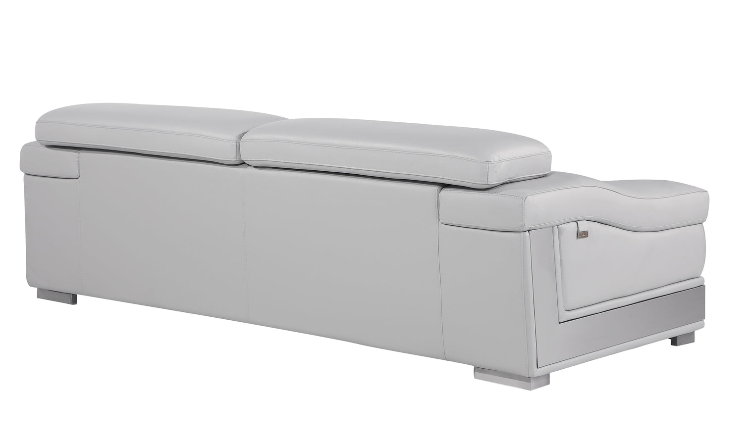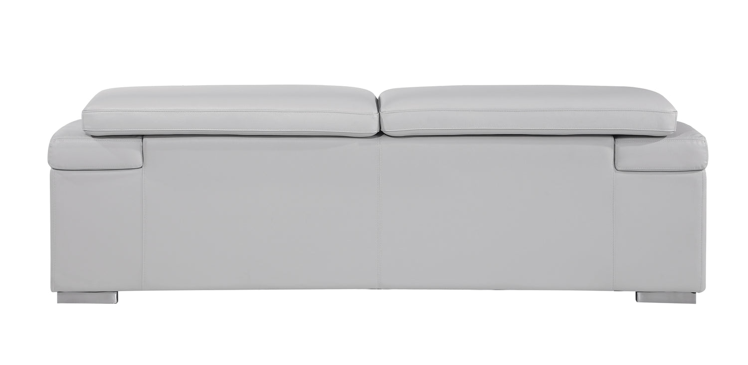 This Top Grain Italian leather sofa combines sophisticated styling with sumptuous comfort. The look can be sleek and low profile with the headrests down to maximize the view plane. Additional support is provided with adjustable headrests for neck comfort that uses a state-of-the-art Japanese ratchet system with multiple adjustable positions The legs are architecturally designed with chrome finish. Starting from the design to the finished product, each step of the production process is checked rigorously for quality. The selection of top grain Italian leather for the upholstering and solid Brazilian wood for the sofa frame is done with utmost respect for the finest raw materials. Italy is world renowned for high quality leather. You can smell and feel and see its high quality in every sofa set. Kiln-Dried hardwood frame with reinforced corner blocks Soft-padded frame made with polyurethane foam wrapped in polyester fiber 8-gauge sinuous spring construction 3-layer high-density foam cushioning Top Grain Italian Leather Solid Brazilian wood frame Lumbar support Large adjustable headrestsElevate your living room—browse our Sofas collection for luxurious seating options crafted for comfort and style.