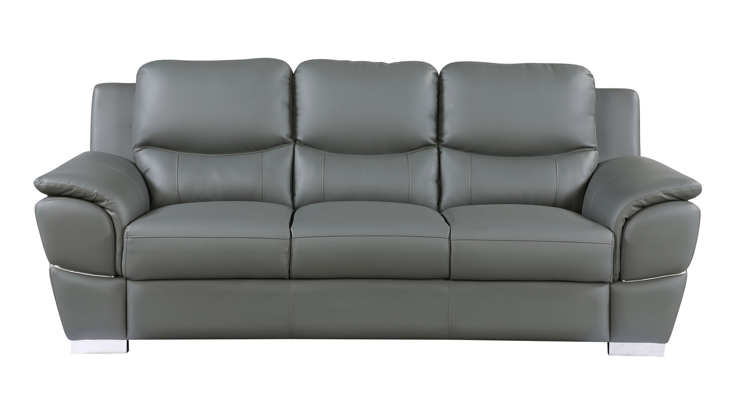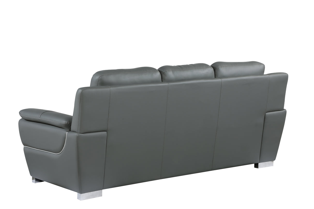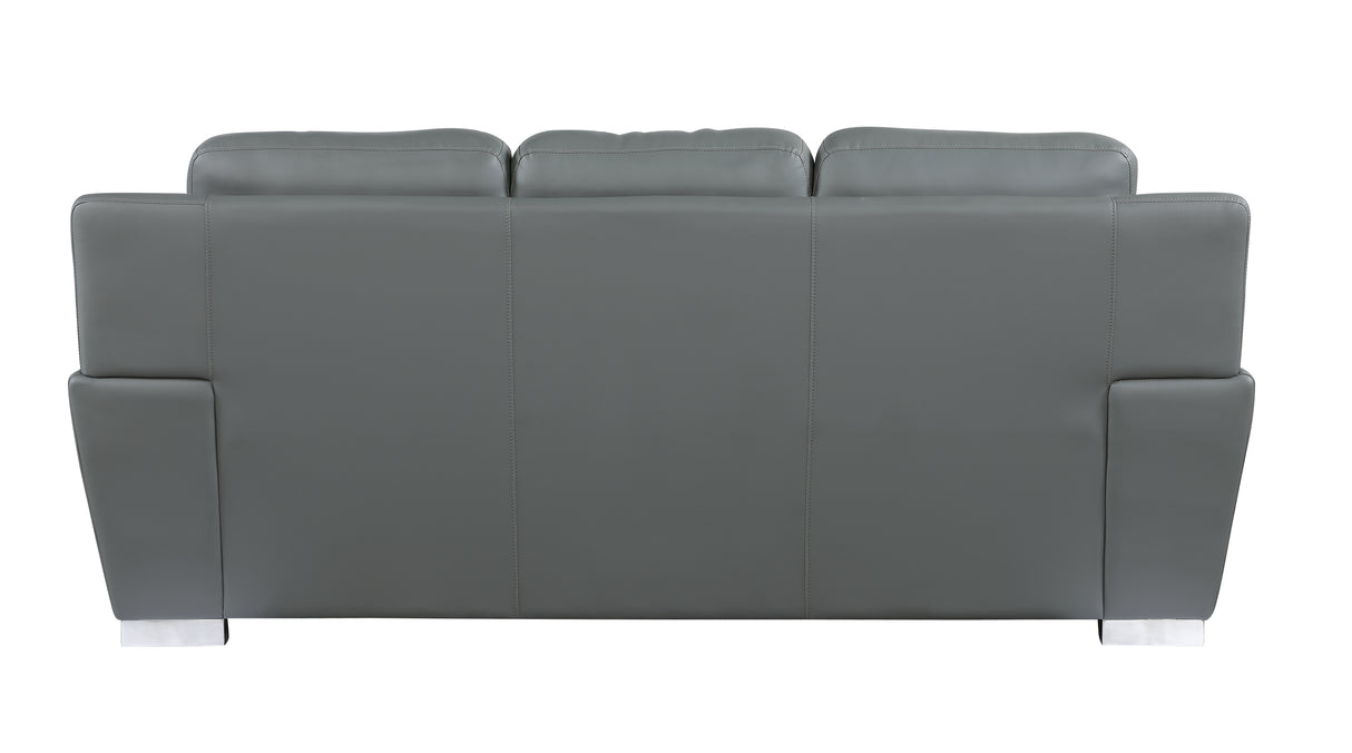 Compelling in its simple yet cutting edge style, this sofa is a bold take on contemporary design. The sleek, art deco tufting is met with grand cloud-like seat cushions to create the statement making structure. Covered with Genuine Leather in a beautiful color that continued that transitional, sleek design. This sofa set also balances the expansive seating with unprecedented craftsmanship. Grounded on stainless steel metal legs with an elegant metal finish, this piece is thoughtful composition, that demonstrates an exceptional opportunity for modern luxury in your home. Kiln-Dried hardwood frame with reinforced corner blocks Soft-padded frame made with polyurethane foam wrapped in polyester fiber 8-gauge sinuous spring construction 3-layer high-density foam cushioning Low profile solid stainless-steel leg Genuine Leather Solid wood frame Starting from the design to the finished product, each step of the production process is checked rigorously for quality. The selection of the best genuine Leather for the upholstering and solid wood for the product frame is made with utmost respect for the finest raw materials.Elevate your living room—browse our Sofas collection for luxurious seating options crafted for comfort and style.