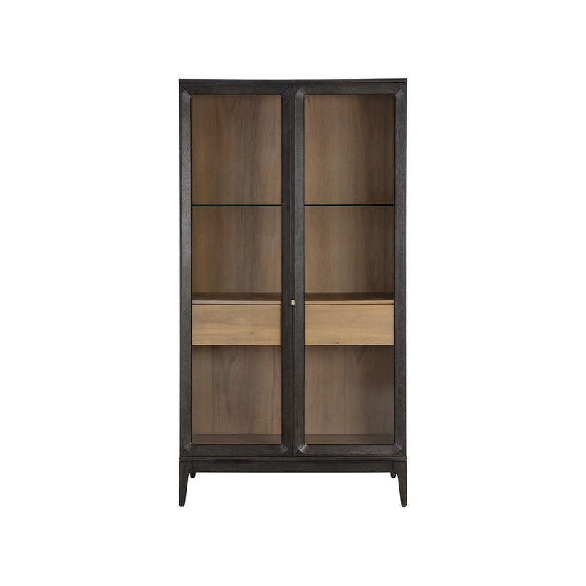 Simple and sophisticated, the Cecilia Display Cabinet features a mid-century design with understated details. Crafted with a smoked grey acacia veneer base and clear tempered glass doors. Solid rubberwood legs and brass handles finish the look.