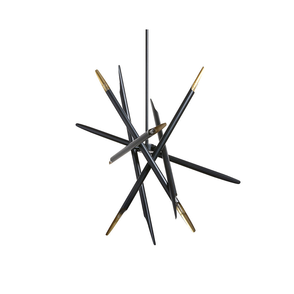 Taking inspiration from mid-century modern design, this fascinating chandelier will add a unique touch to any space. Crafted with a matte black metal exterior frame with accenting gold finish in the interior.