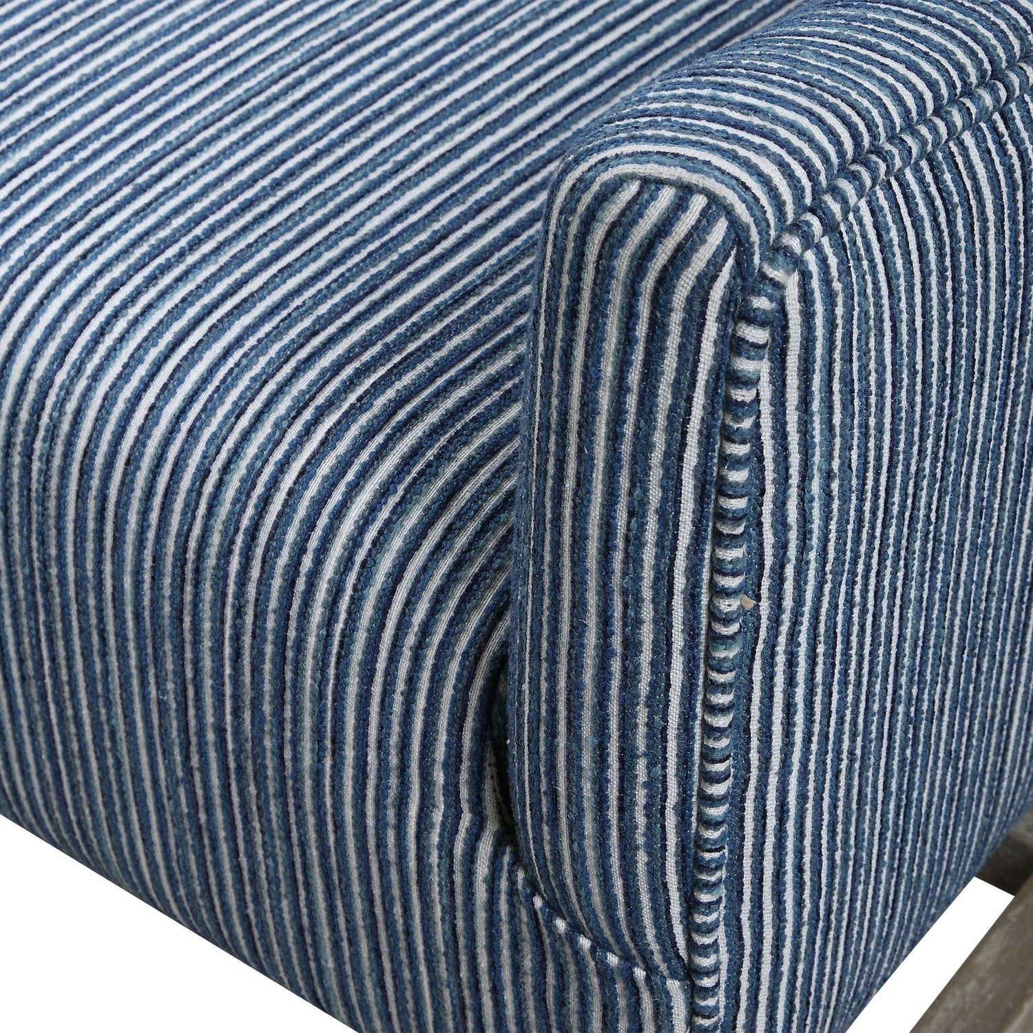 - Showcasing A Classic Wingback Style With A Coastal Feel, This Accent Chair Features A Blue And White Organically Striped Fabric, Resting On Naturally Finished Solid Wood Legs.