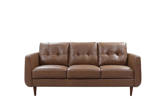 Want to get a great leather sofa set that fits your modern design tastes? Take a look at the Lyman Sofa Set with its luxurious Italian leather upholstery in Its button-tufted back cushions and subtly curved bottom edges of the arms give it some visual flair. The exposed wooden legs help to elevate these pieces above the floor. The set includes one Sofa, one Loveseat, and one Chair. Give these pieces a new home, yours, and be prepared to enjoy your savvy design and quality choice for years.