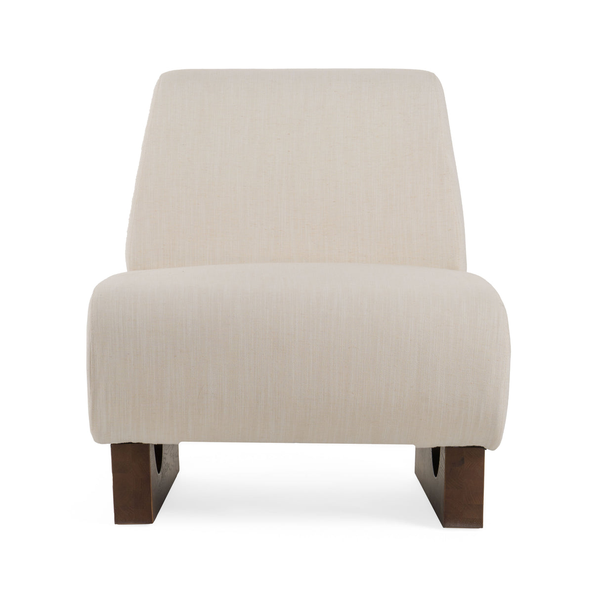 The Modrest Barbara Modern Off White Accent Chair is a stylish addition to any living space. Upholstered in an elegant off-white polyester blend fabric, it exudes sophistication. The chair features a sculptural round pillow back, complemented by walnut solid oak wood legs and a stainless steel frame back support with wood detail. This chair combines comfort and aesthetics seamlessly. No assembly is required, making it a hassle-free choice for your home
