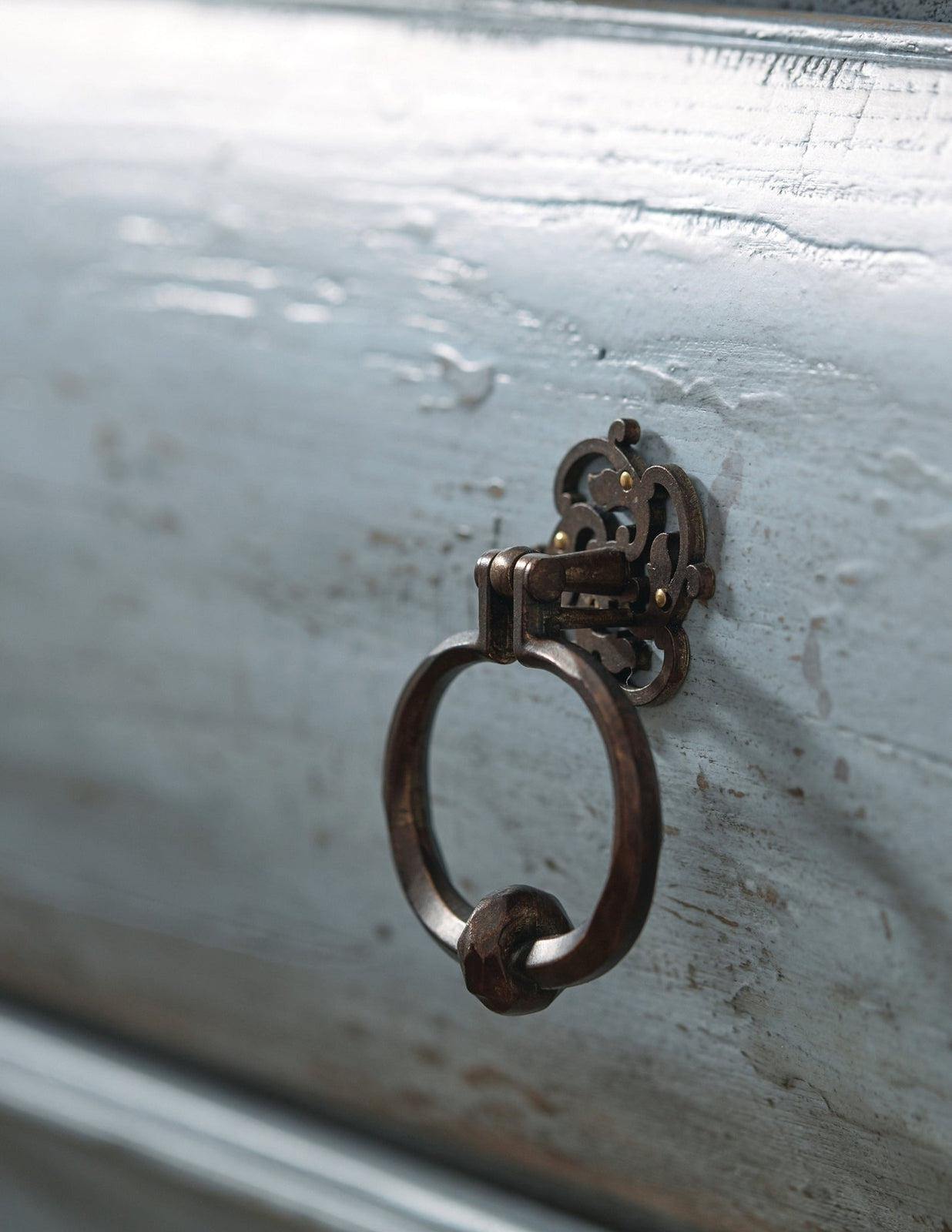 Elaborada con álamo y madera maciza con chapas de olmo y cedro, su aspecto envejecido y desgastado incluye raspaduras, agujeros de gusano y ranuras que evocan el espíritu de las auténticas antigüedades americanas. De la ecléctica colección Beaumont , inspirada en el arte del reciclaje, esta pieza combina el encanto vintage con la comodidad moderna.