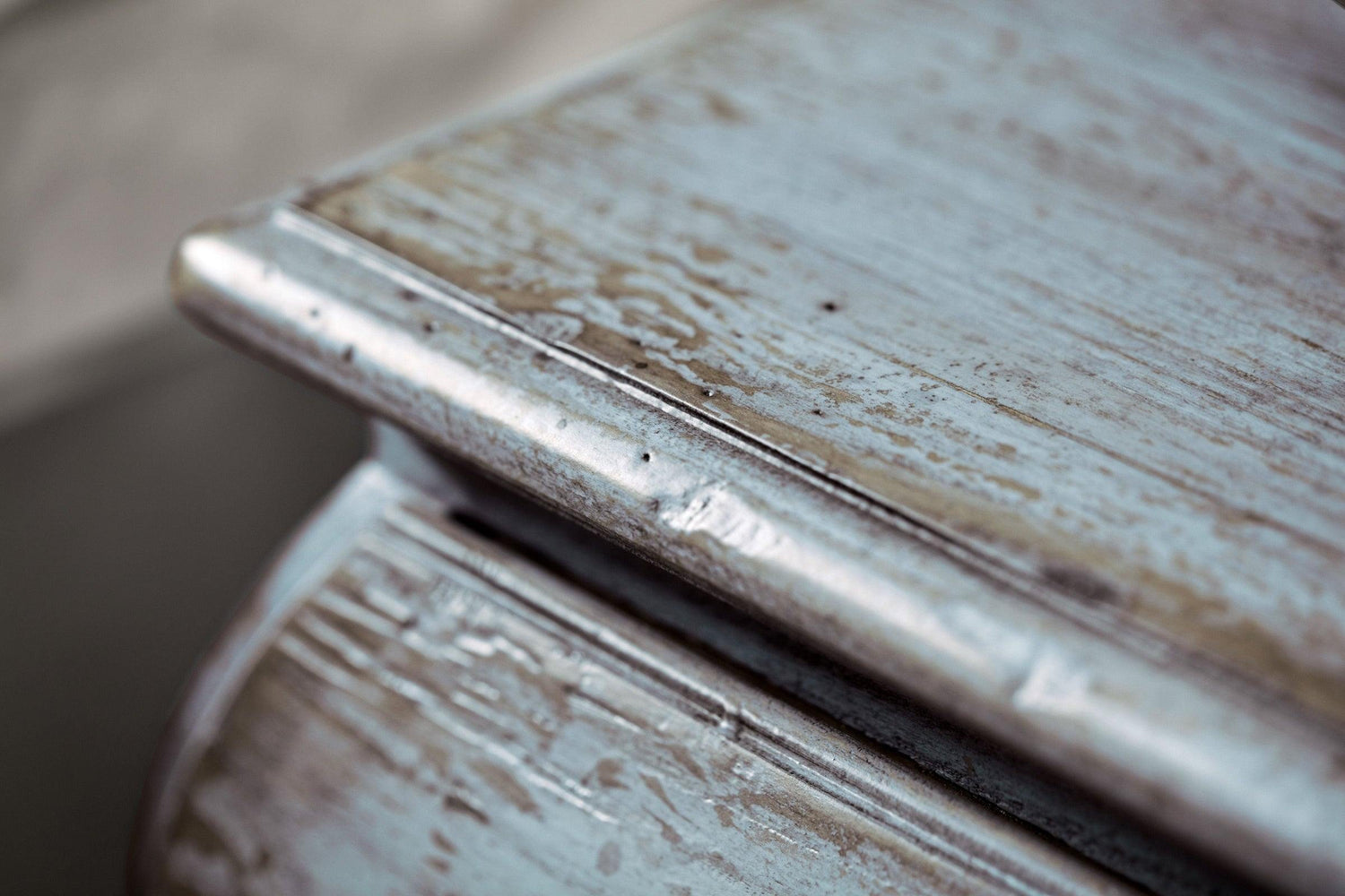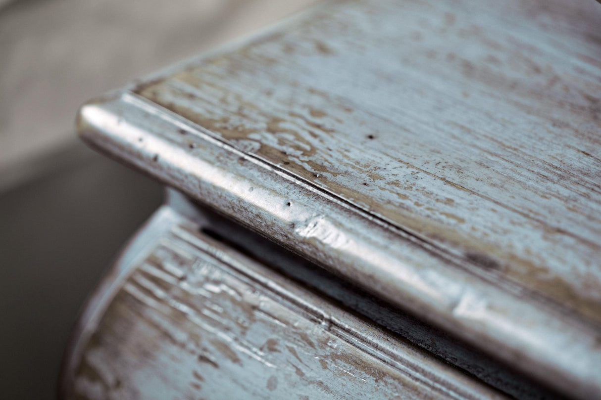 Decora con distinción con la cómoda Beaumont Bachelors de Hooker Furniture , una llamativa pieza en forma de bomba con un acabado en un suave azul Skylark con matices de madera natural. Diseñada para ser elegante y práctica, esta cómoda cuenta con tres cajones, uno superior forrado en fieltro, una toma de corriente integrada con puertos USB y una práctica luz nocturna táctil.