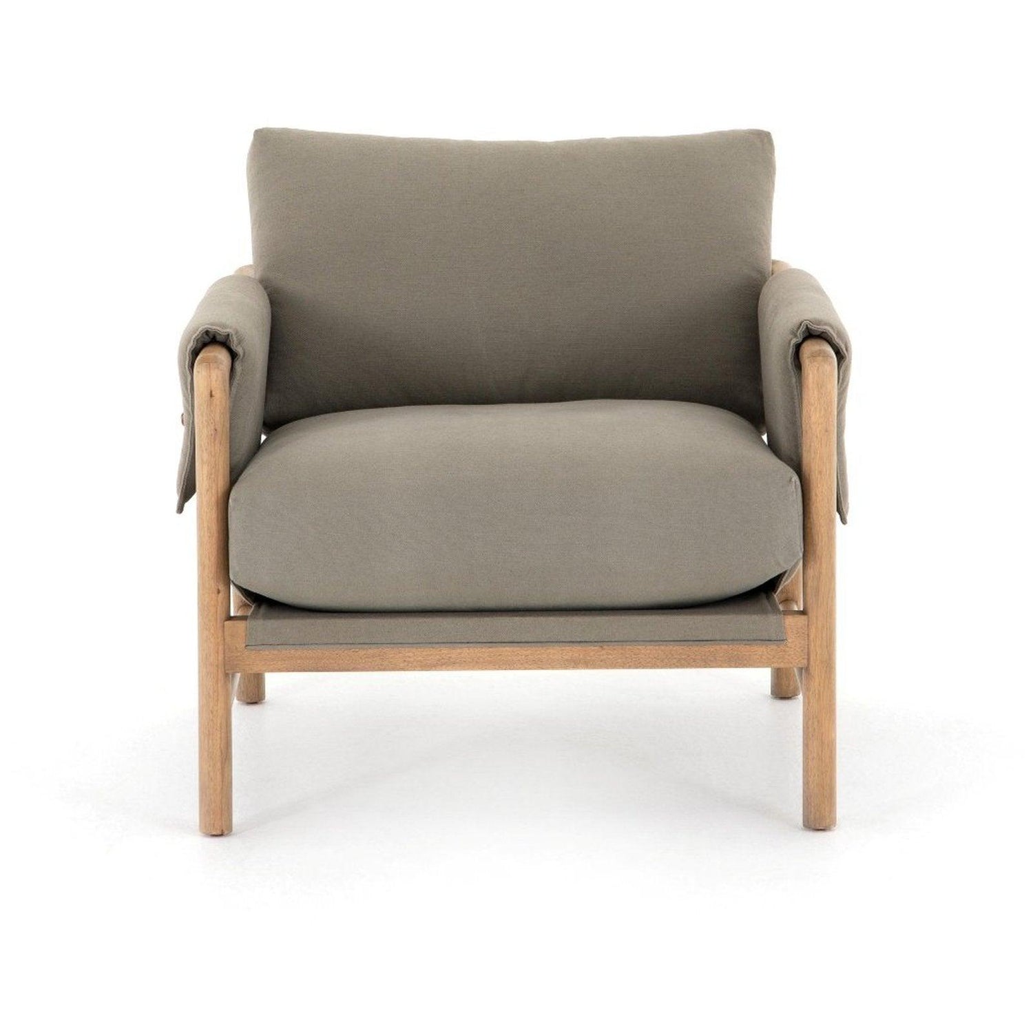 - Con un tapizado de mezcla de algodón afelpado que envuelve cada brazo, los botones falsos añaden un elemento de interés a los asientos lujosamente cómodos inspirados en mediados de siglo en un tono oliva claro, con un marco de parawood suavemente esculpido que logra una apariencia maravillosamente neutral.