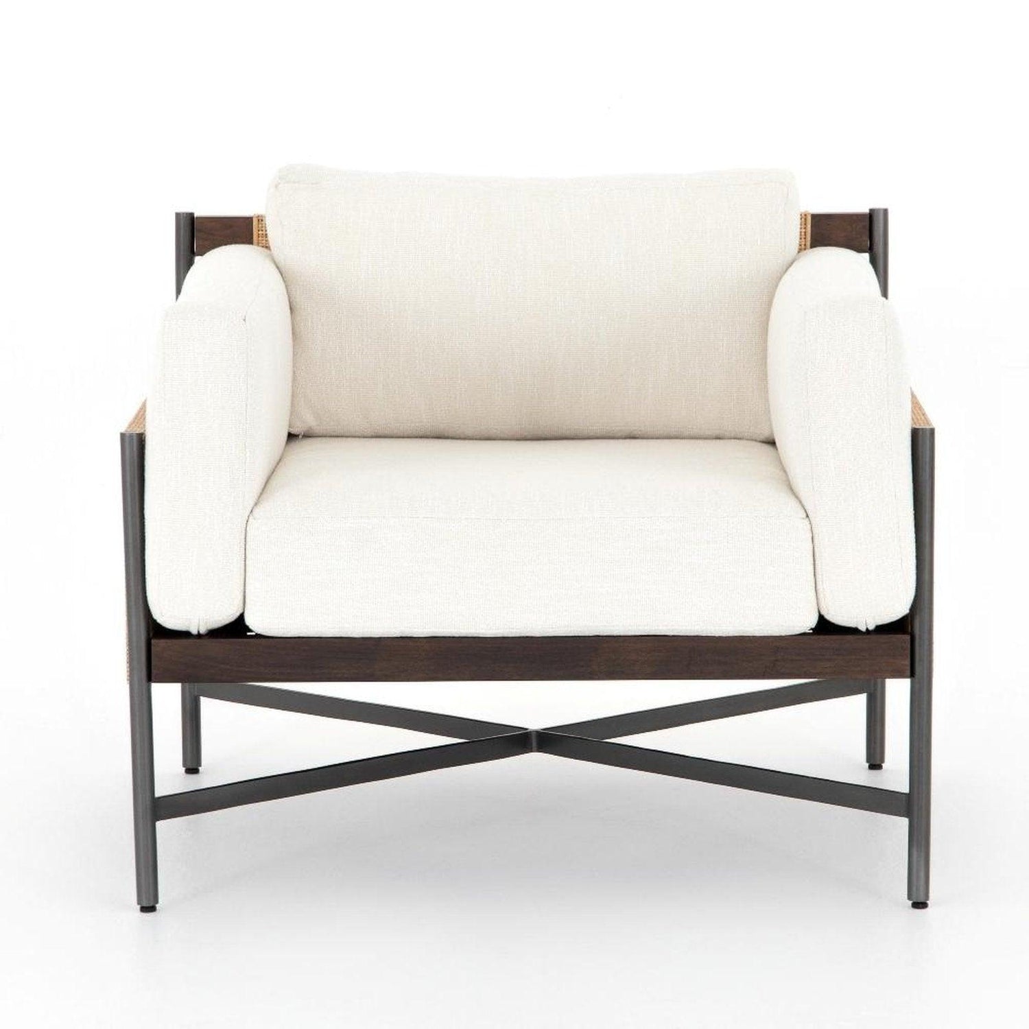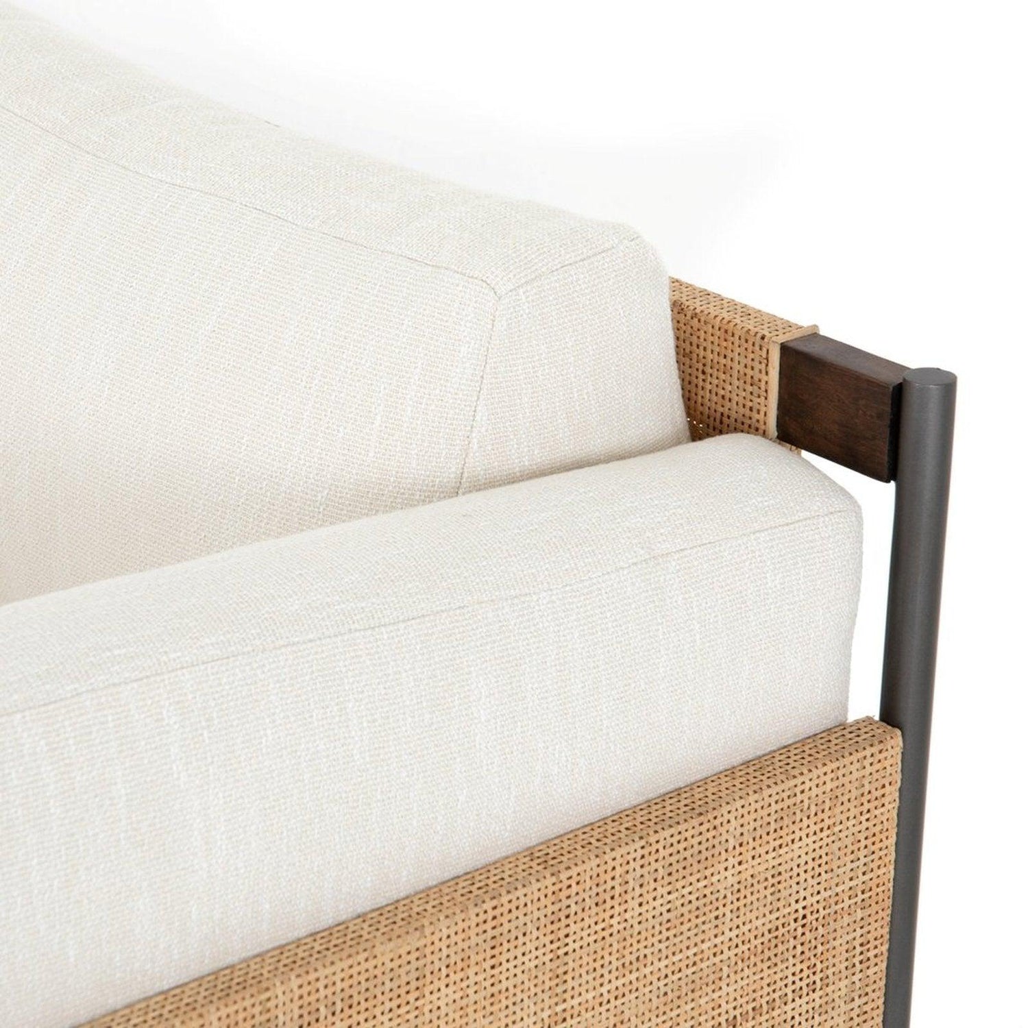 - La caña natural y la caoba marrón cálida se combinan con una base de hierro con acabado carbón para lograr una apariencia fresca y refinada con presencia orgánica.
