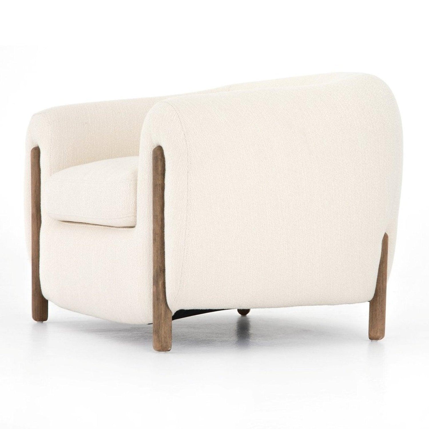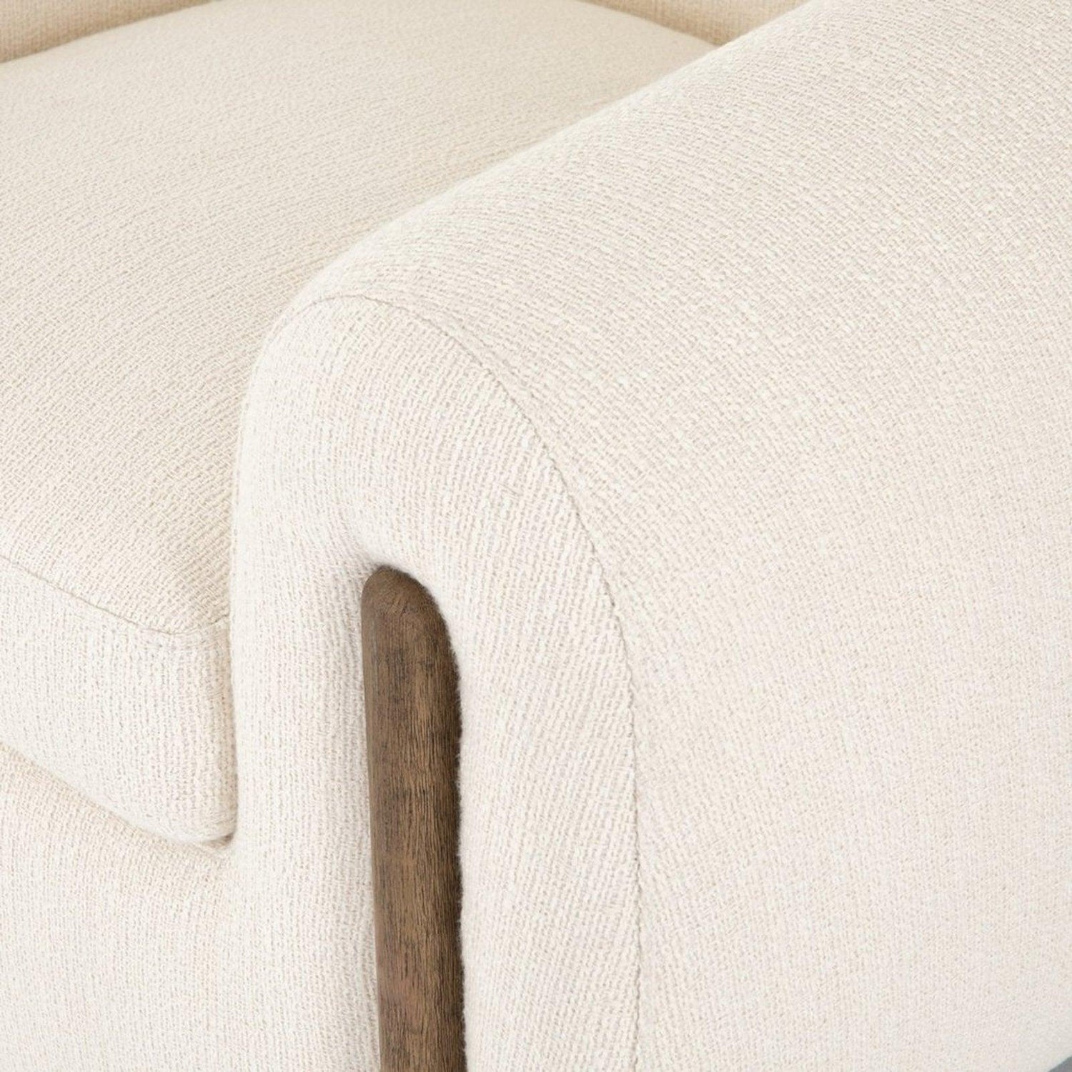 - Las patas de madera maciza de caucho se entrecruzan con la tapicería de marfil para lograr un contraste limpio de color y escala.