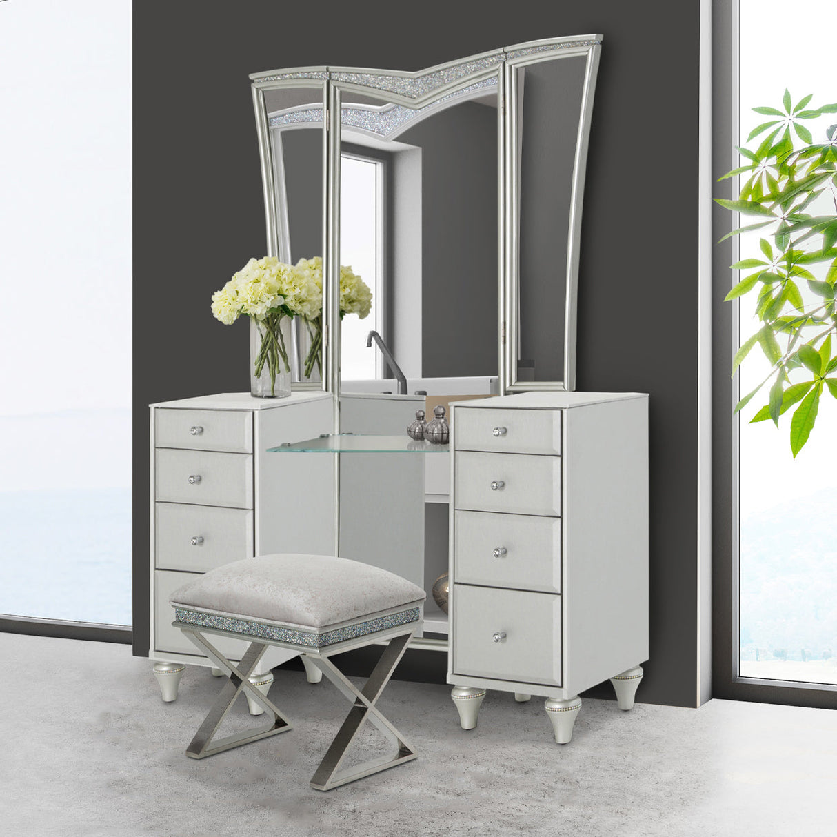 Tocador Melrose Plaza en color paloma con detalles de cristal – Muebles AICO