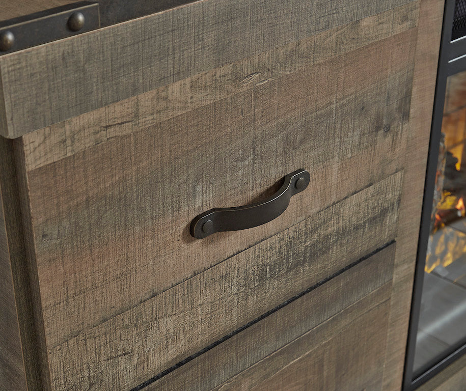 Centro de entretenimiento Ashley Brown Trinell de 4 piezas con chimenea eléctrica