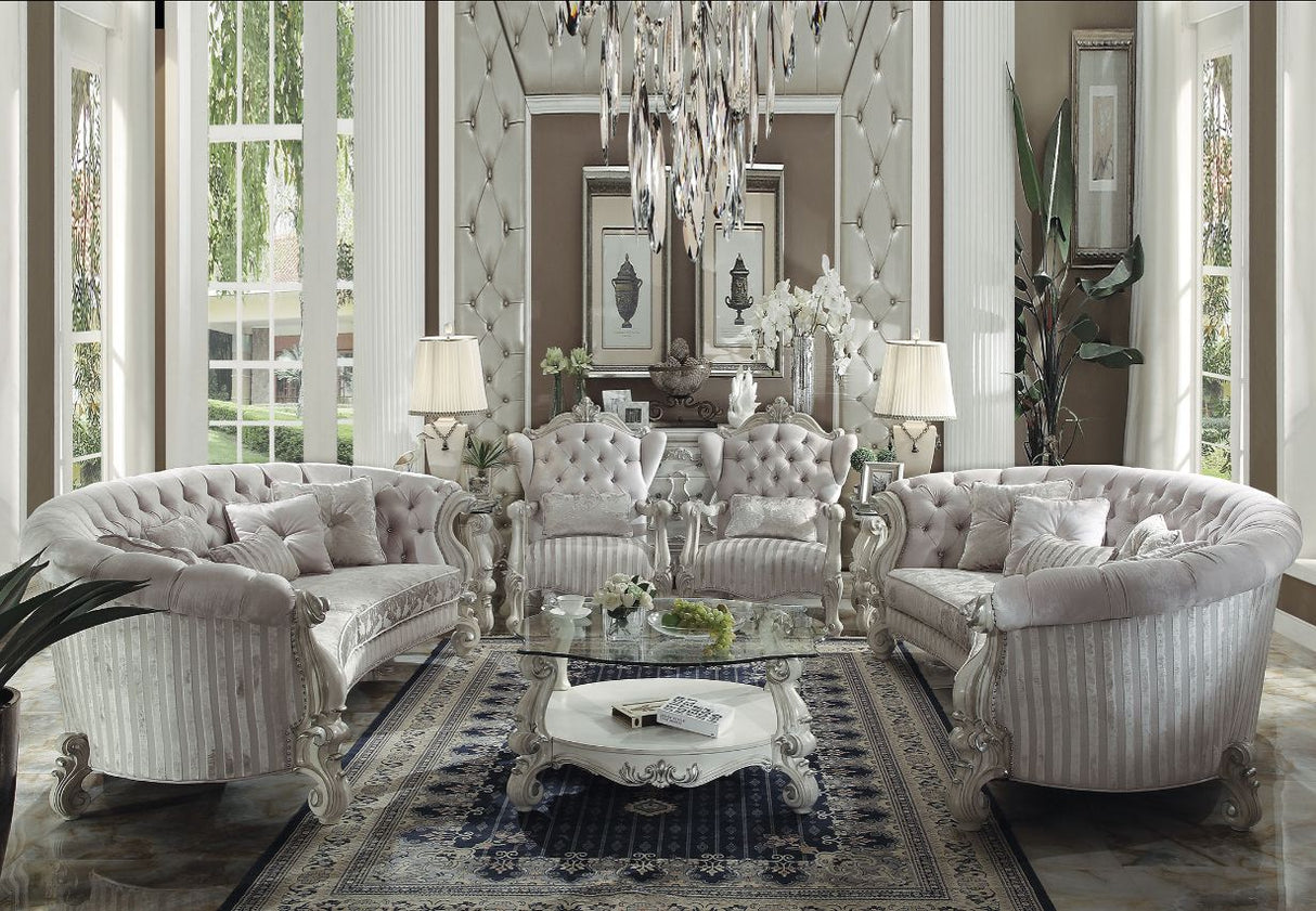 Sofá Versailles con 5 cojines 52085, tela marfil y acabado blanco hueso | Acme está agotado y se enviará tan pronto como vuelva a estar disponible.