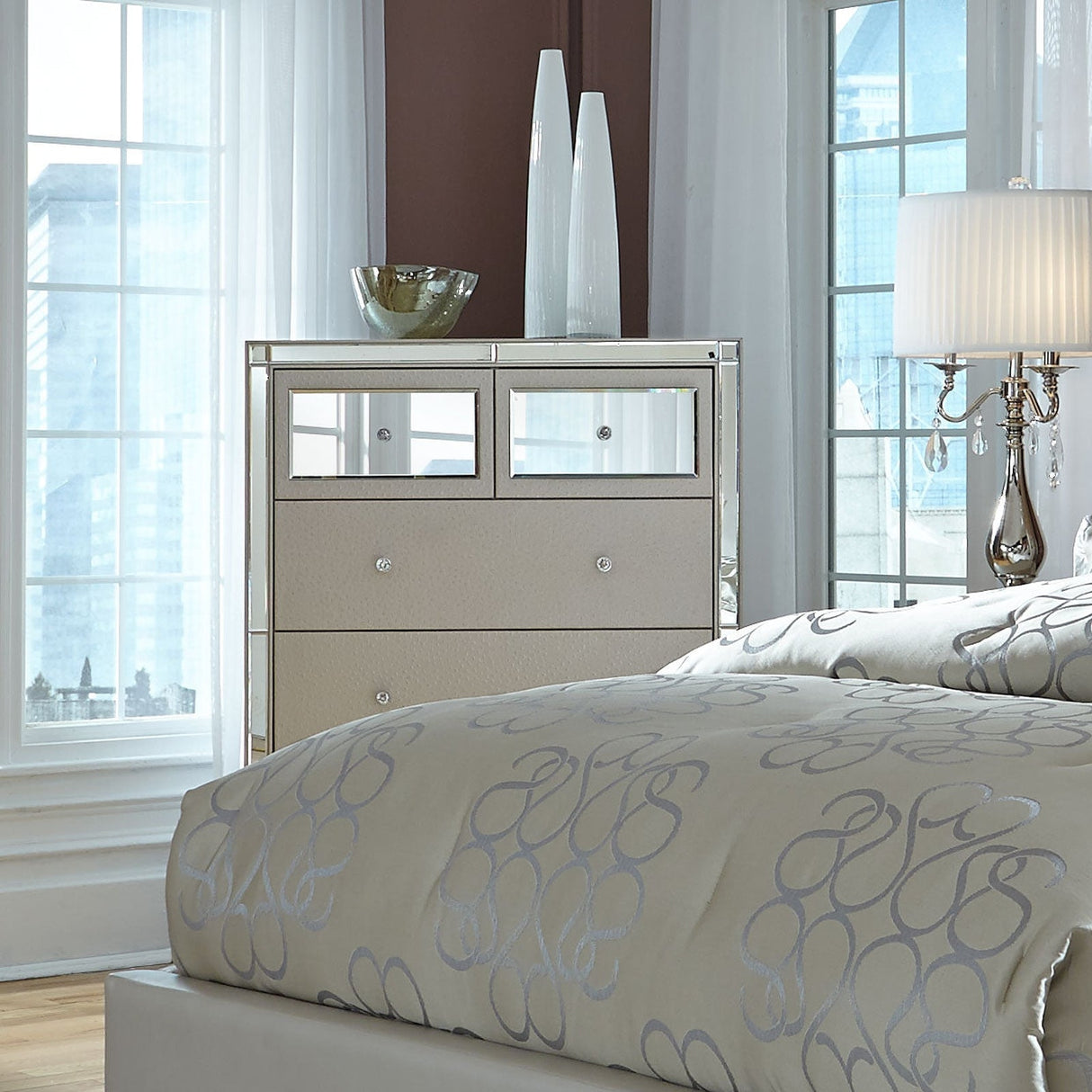 Cómoda Hollywood Loft de 5 cajones con acabado escarchado – Muebles AICO