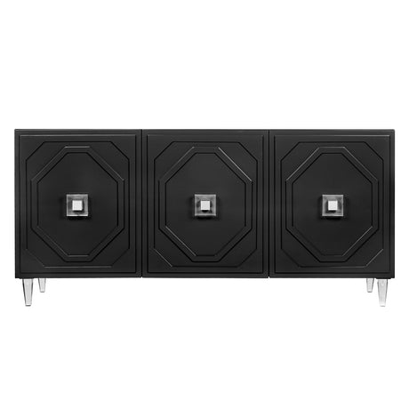 Cómoda Andover de 6 cajones con puerta de vidrio templado en roble oscuro