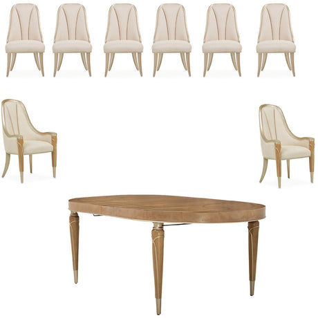 Juego de comedor ovalado Villa Cherie Caramel de 9 piezas, Chardonnay — Muebles AICO